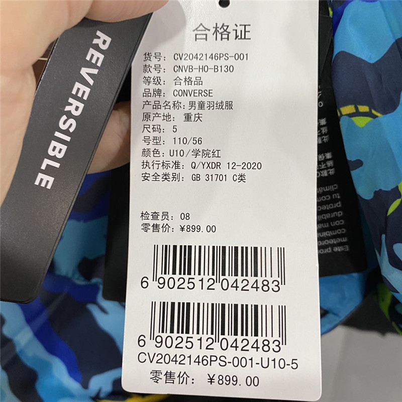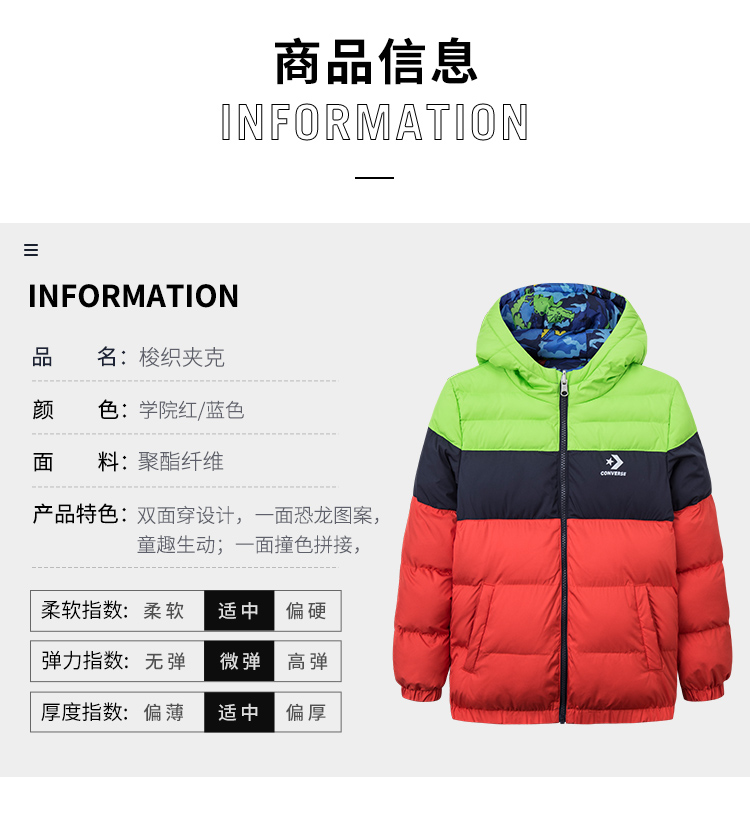 Converse匡威童装冬新 男小童两面穿短款轻薄羽绒服CV2042146