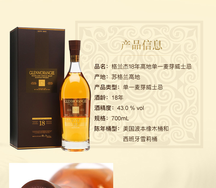 格兰杰18年高地单一麦芽苏格兰威士忌