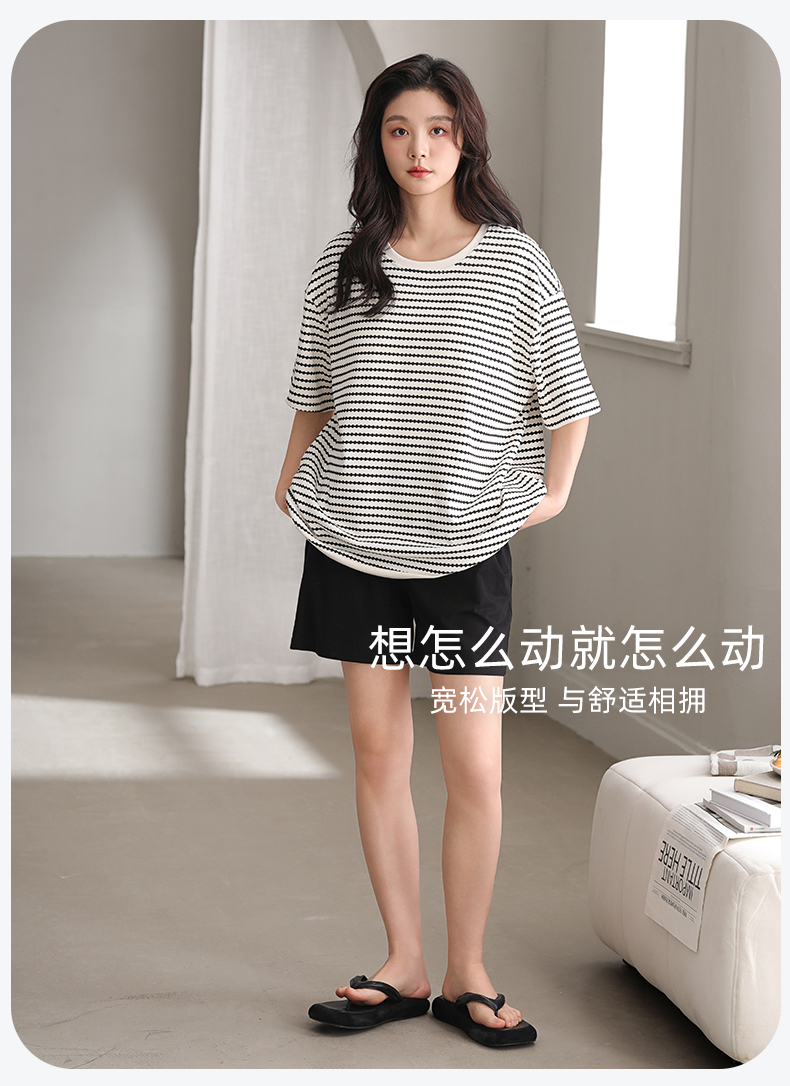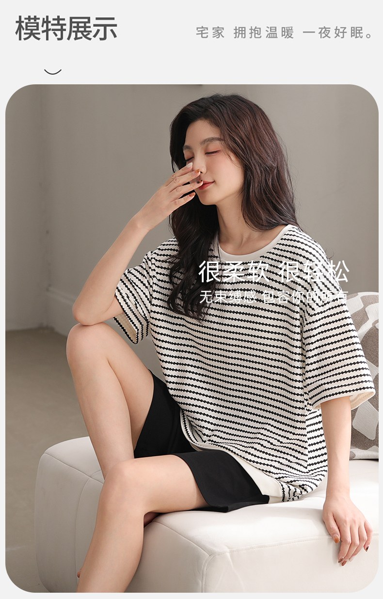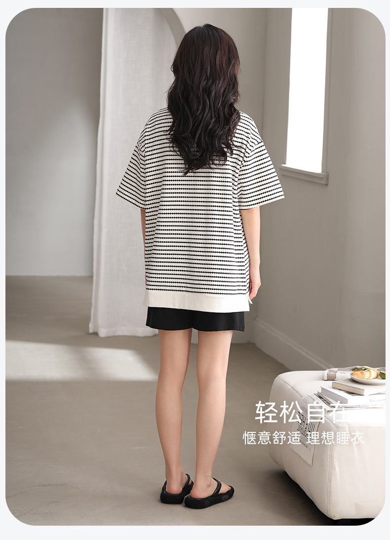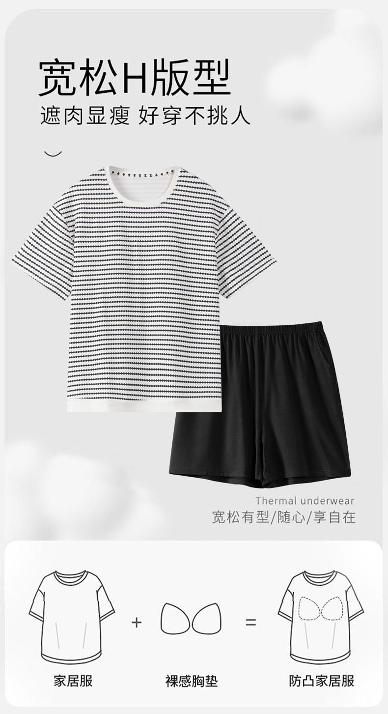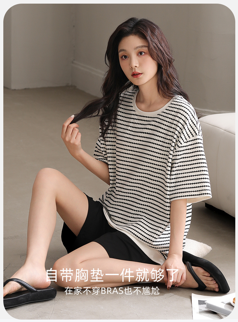 洁丽雅夏季新款女士家居服套装短袖短裤轻薄透气带胸垫可外穿睡衣