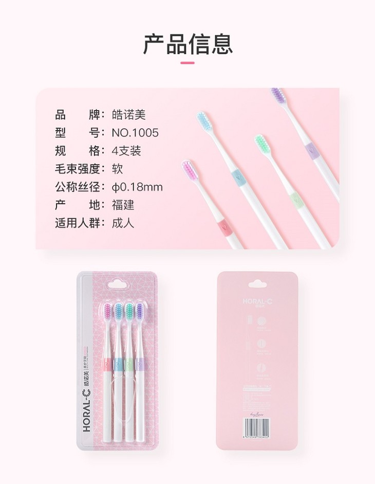 【包邮】皓诺美成人牙刷1组4支家庭装 柔细刷毛 炫彩防滑手柄牙刷JPY带授权招加盟代理