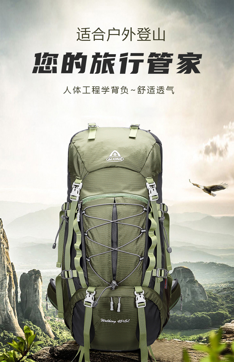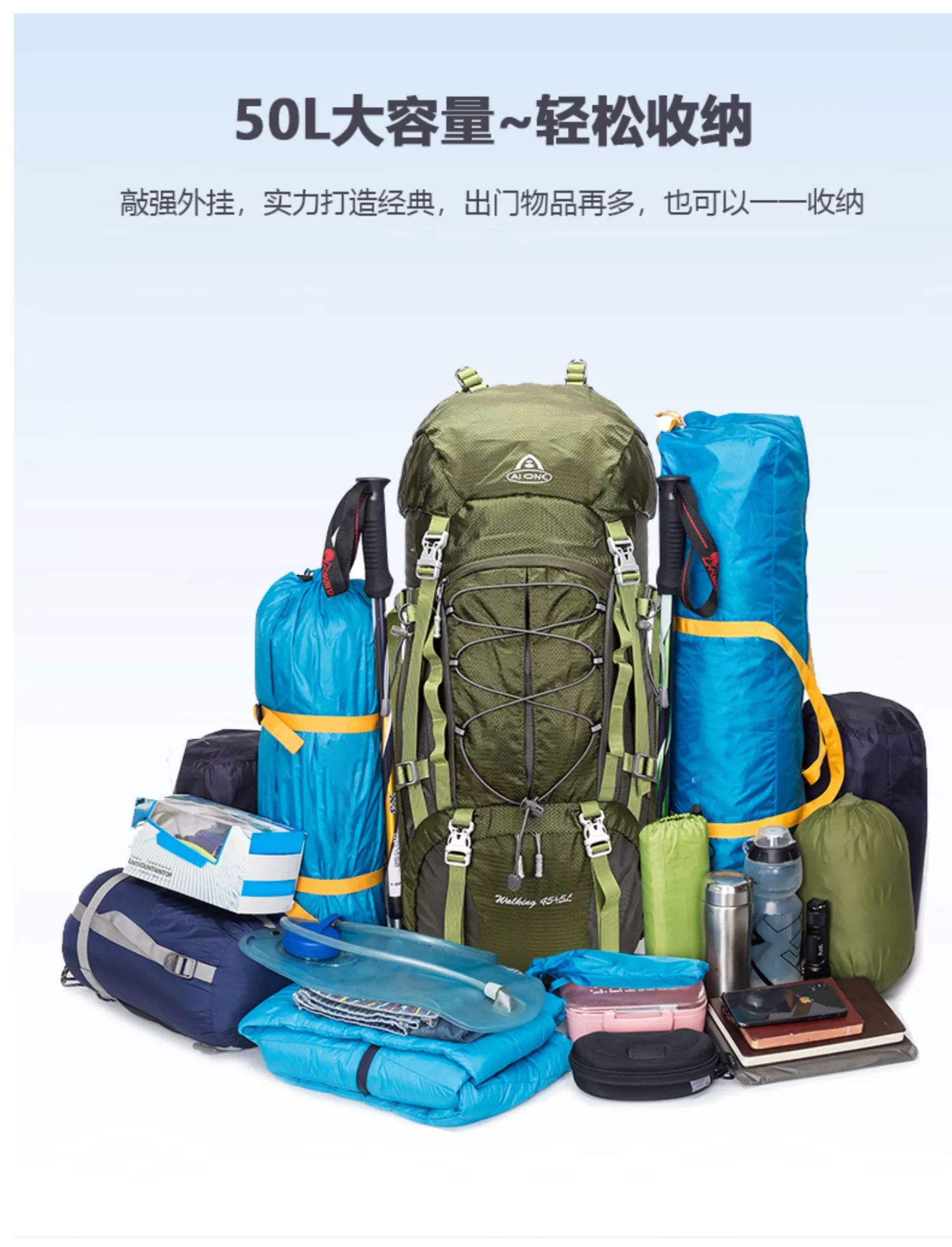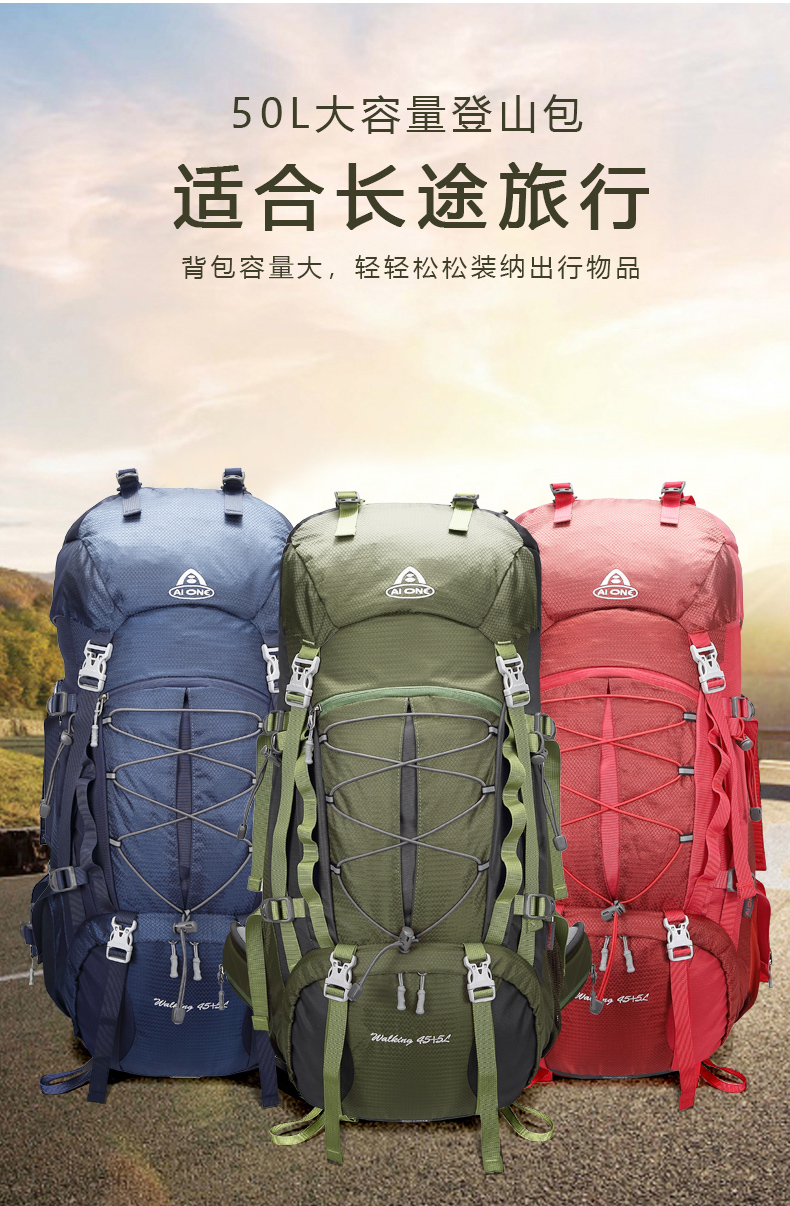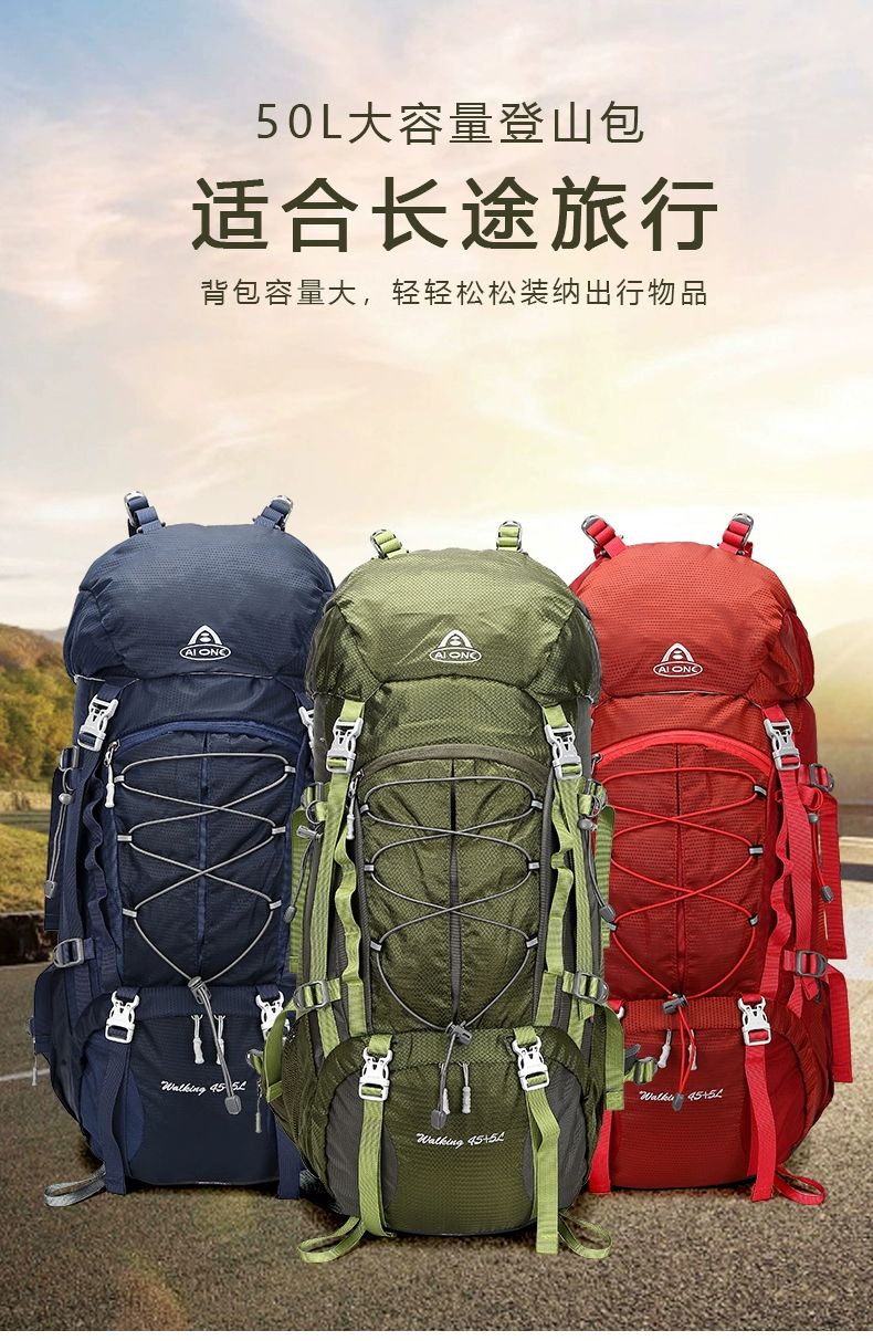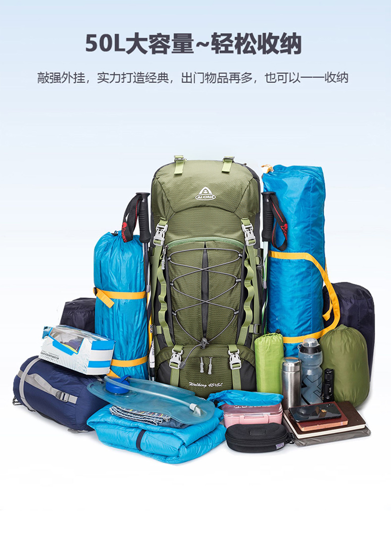 【秒杀!25新色】艾王 50L 轻悬浮户外徒步登山包休闲双肩包多功能运动双肩包多日出行KA-8053
