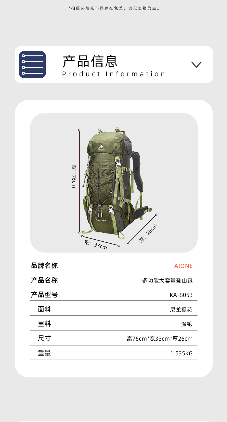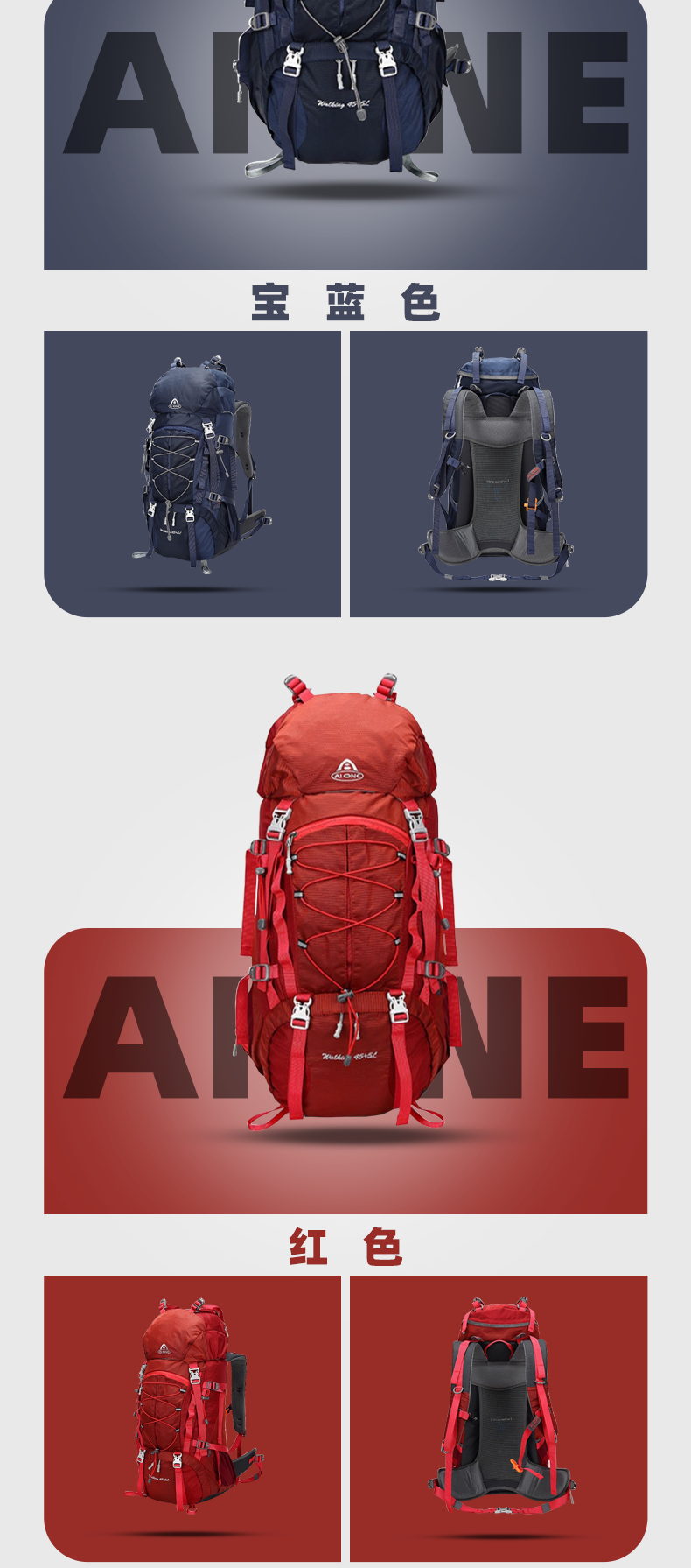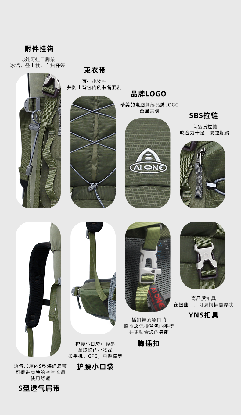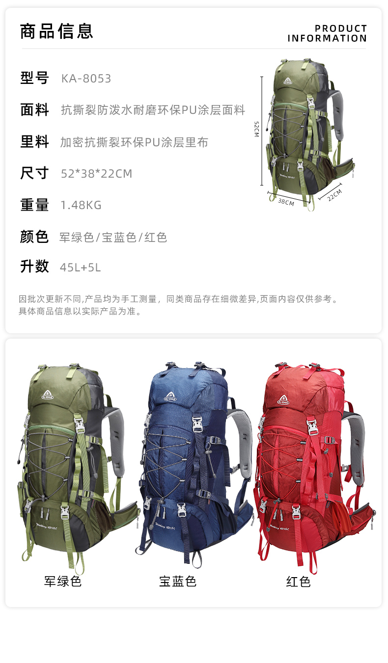 【秒杀!25新色】艾王 50L 轻悬浮户外徒步登山包休闲双肩包多功能运动双肩包多日出行KA-8053