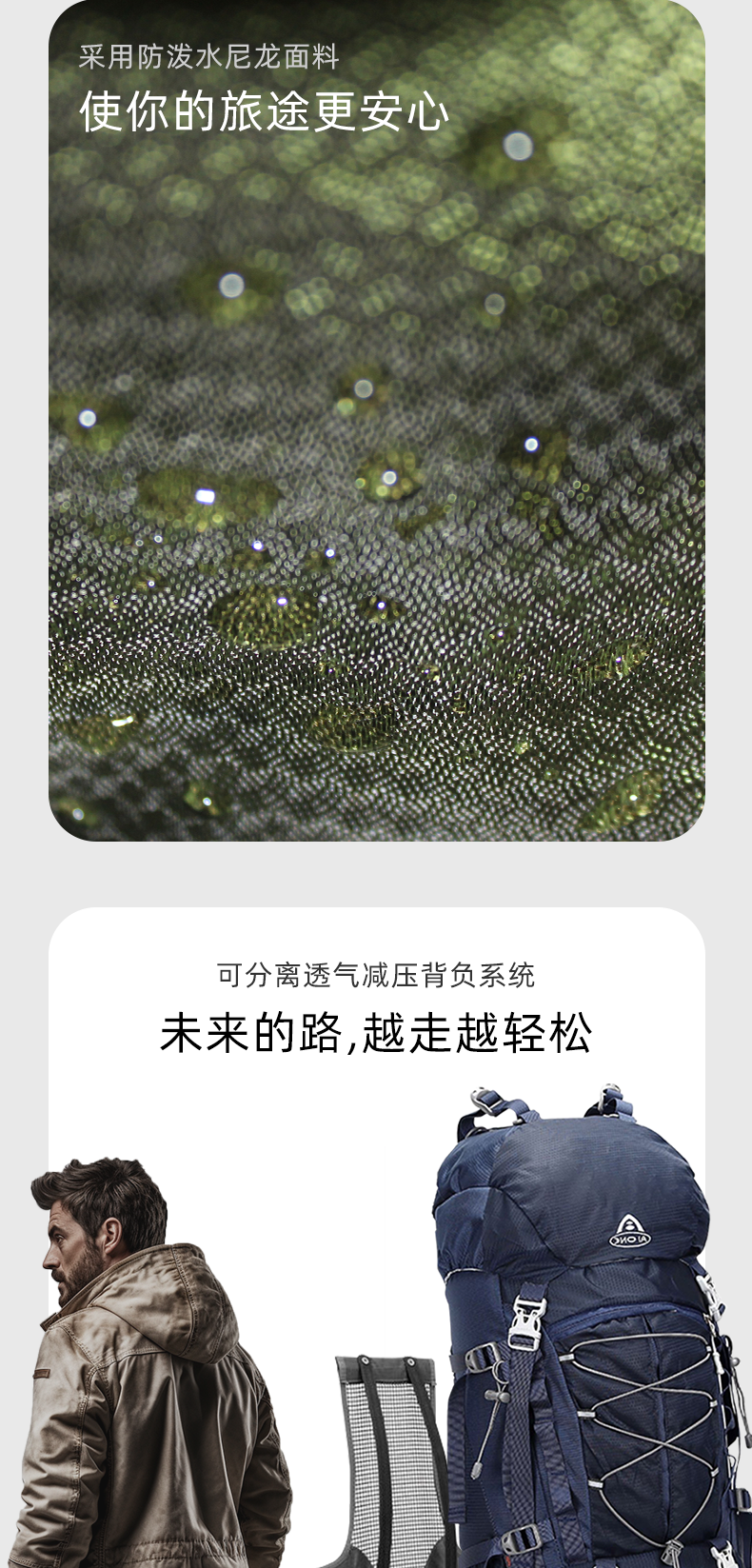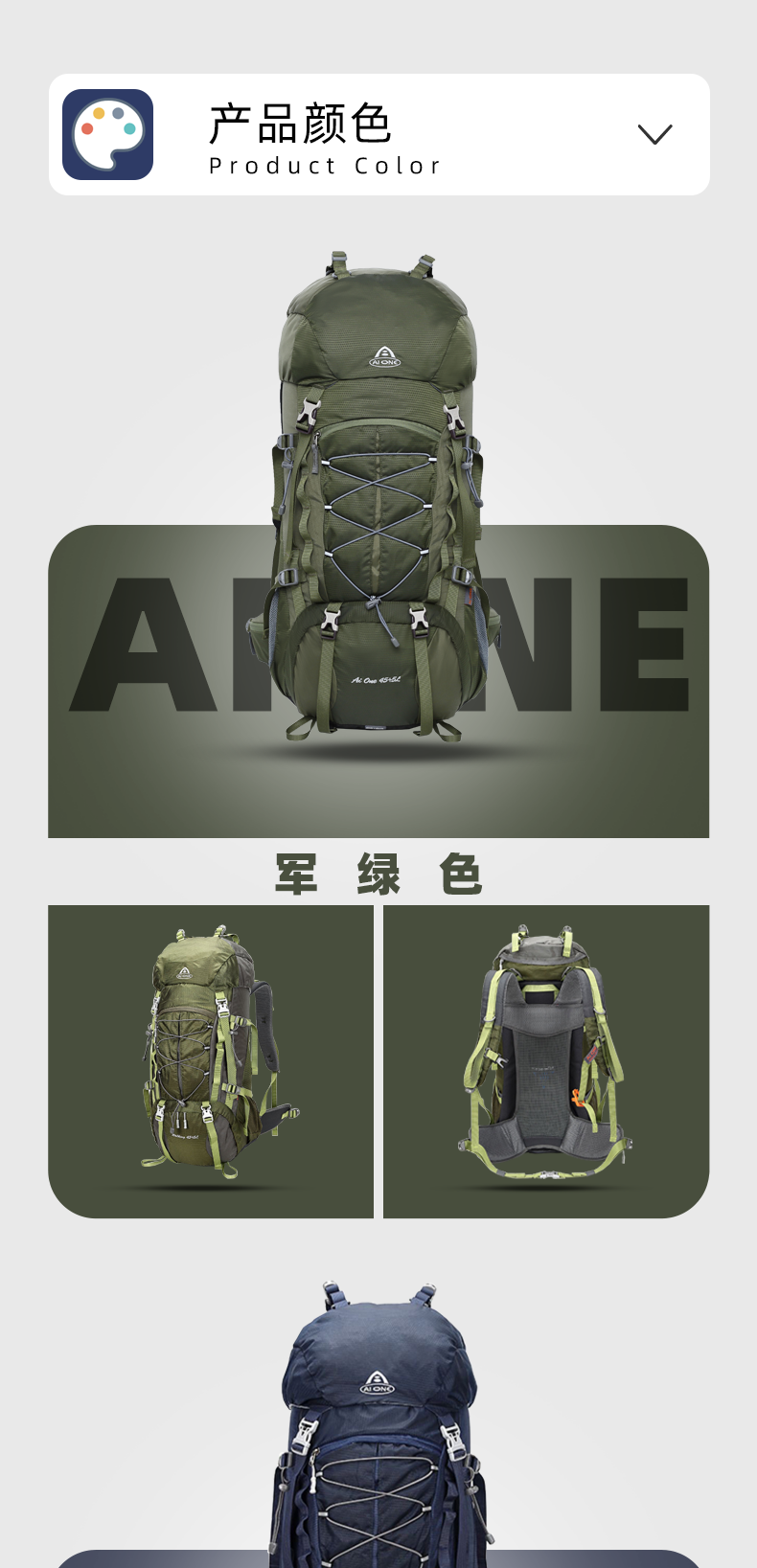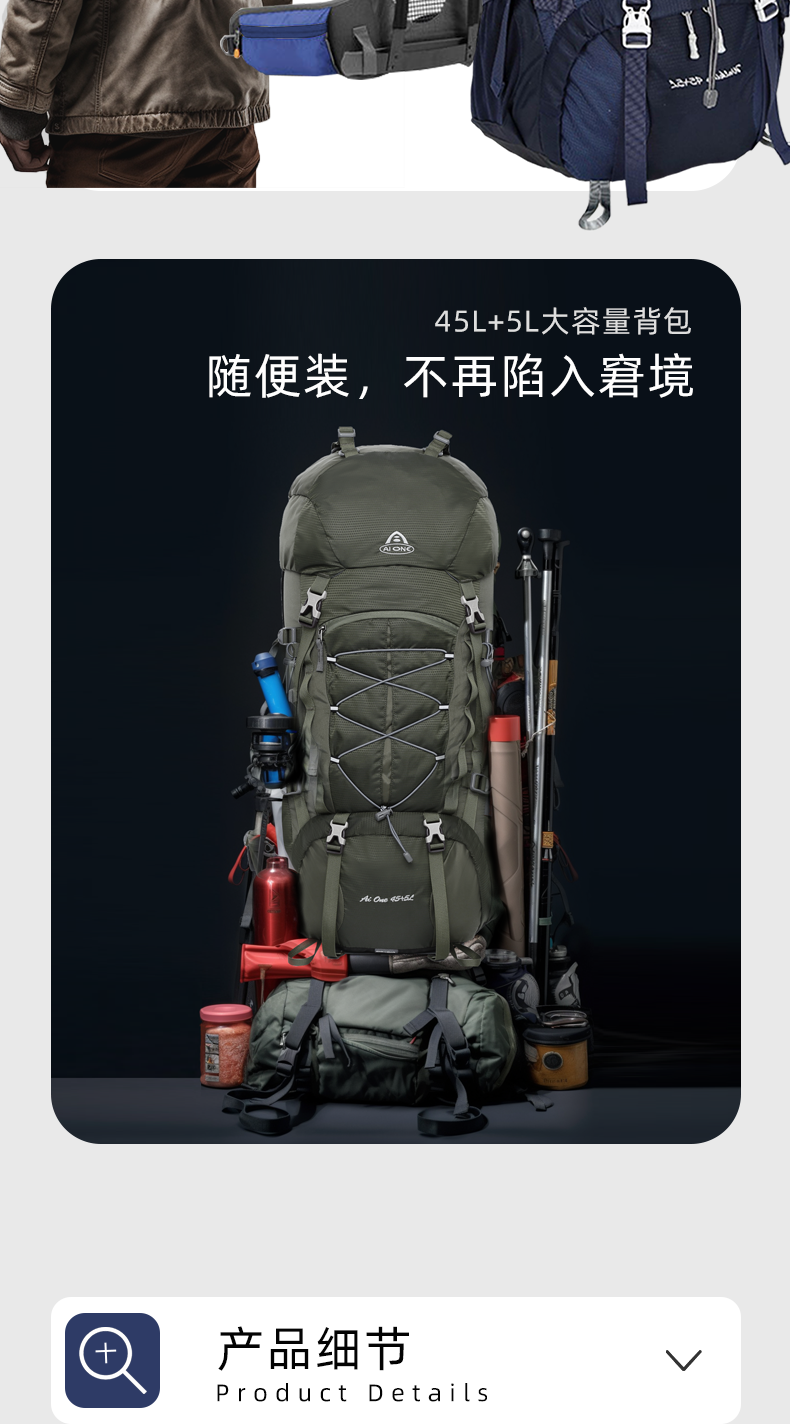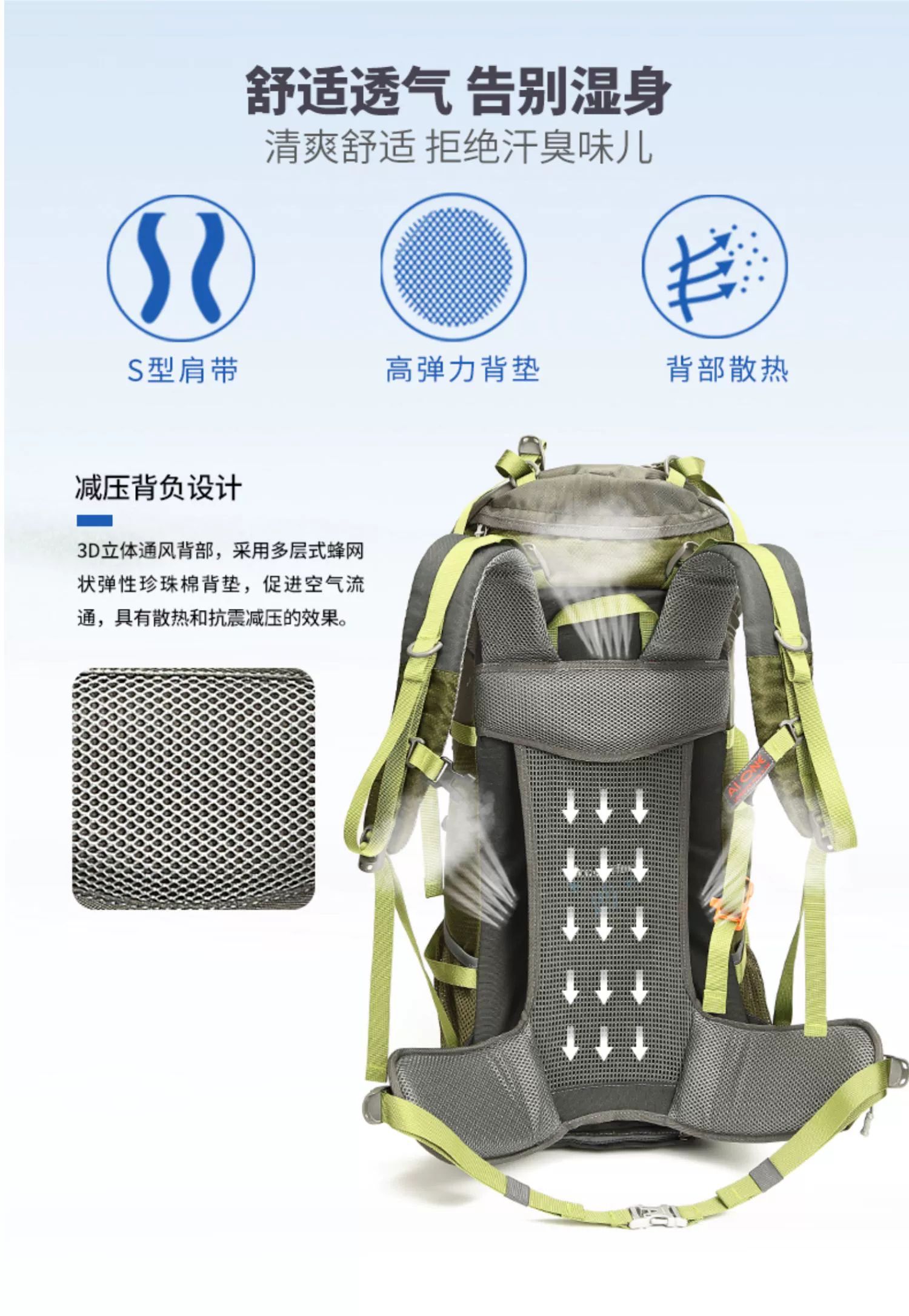 【秒杀!25新色】艾王 50L 轻悬浮户外徒步登山包休闲双肩包多功能运动双肩包多日出行KA-8053
