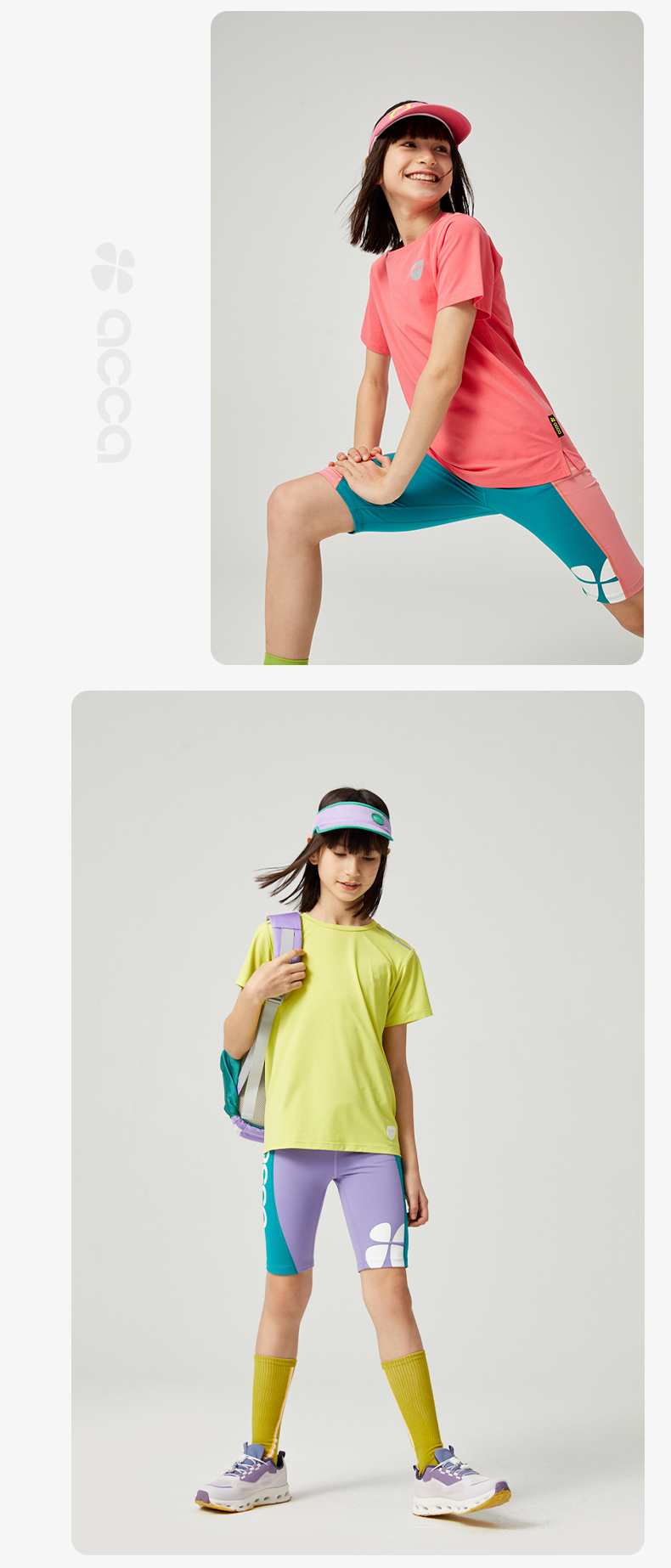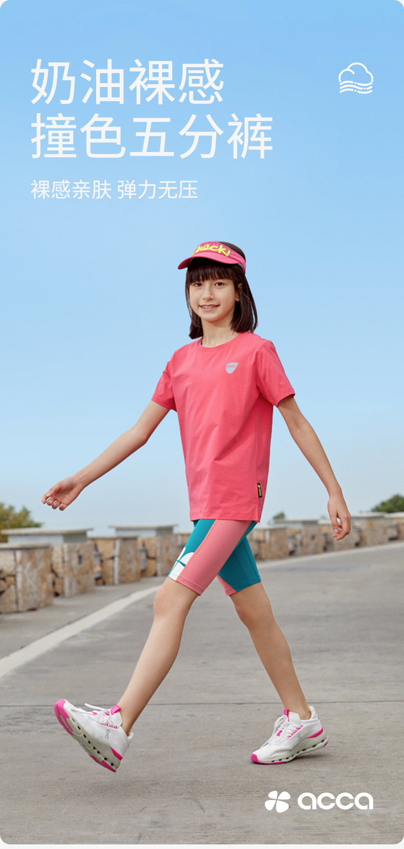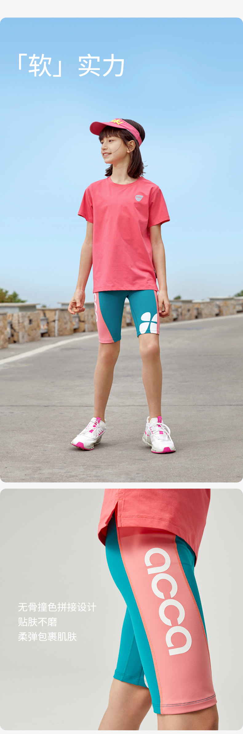 acca春夏儿童撞色五分瑜伽裤女速干打底紧身裤冰感leggings鲨鱼裤