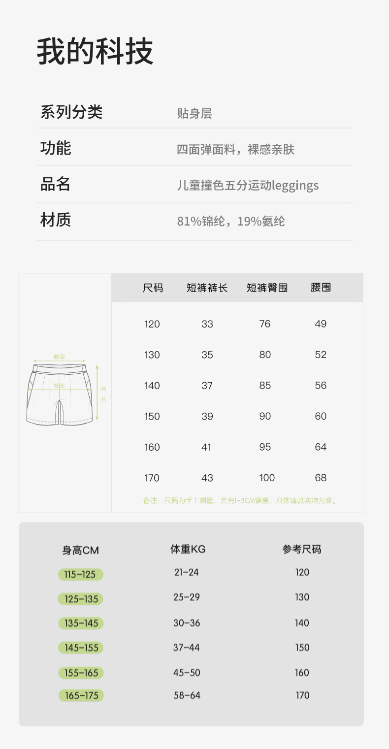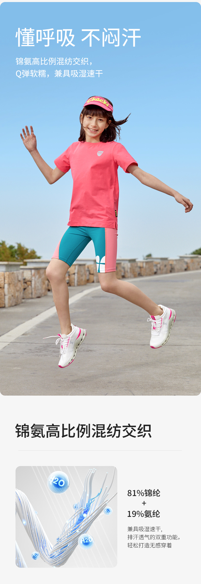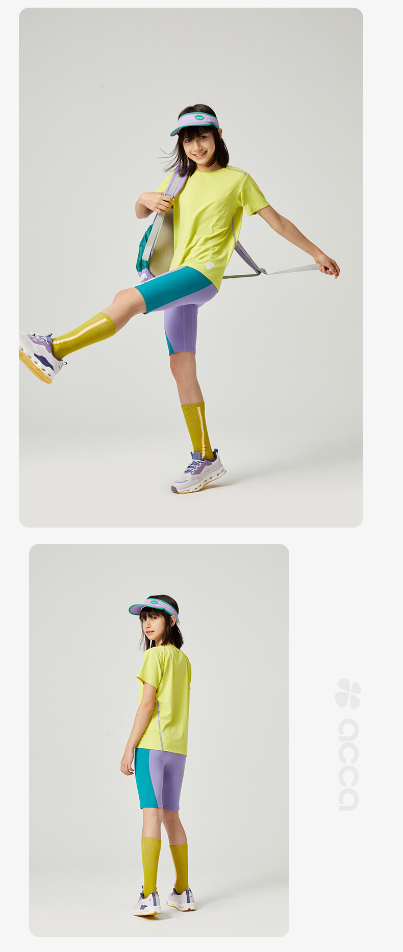 acca春夏儿童撞色五分瑜伽裤女速干打底紧身裤冰感leggings鲨鱼裤