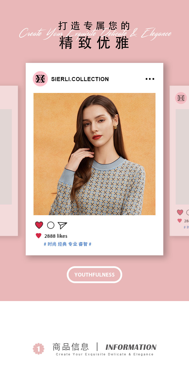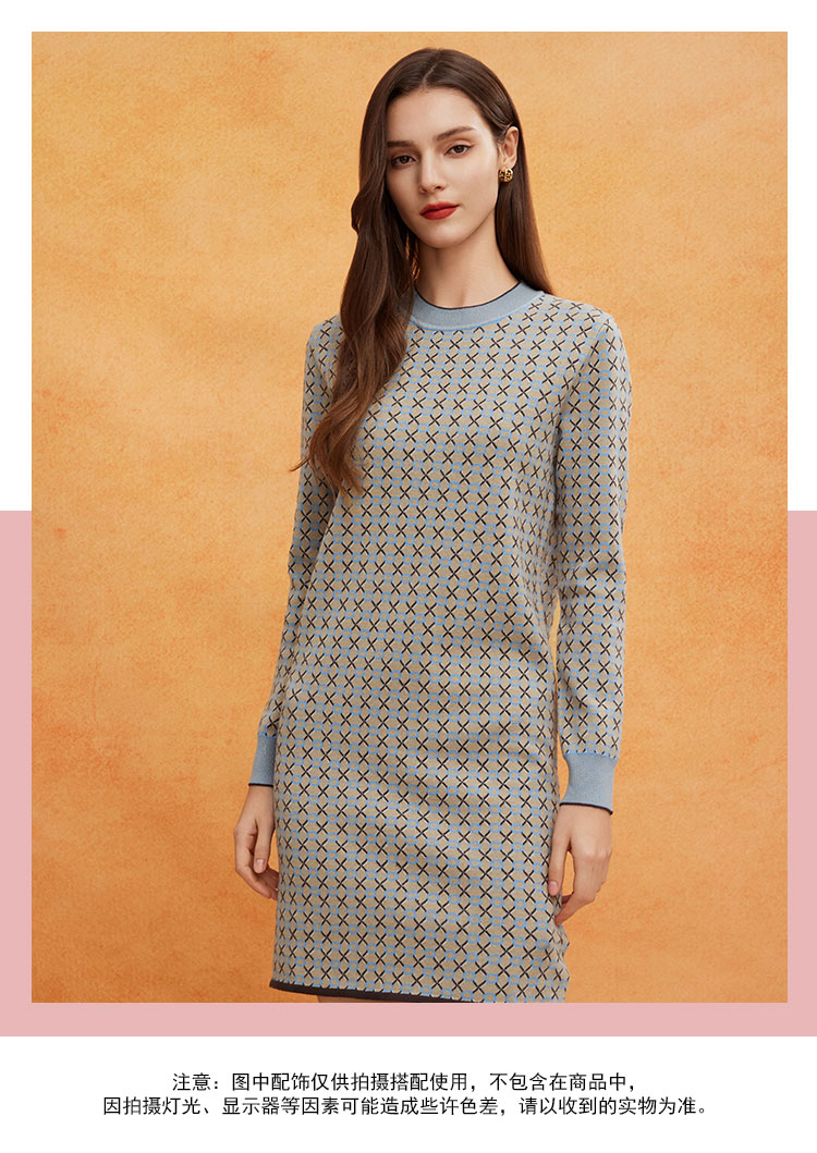 QE63A瑟俪(斯尔丽高端)舒适柔软低圆领撞色超细羊毛提花毛衣连衣裙