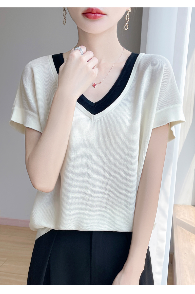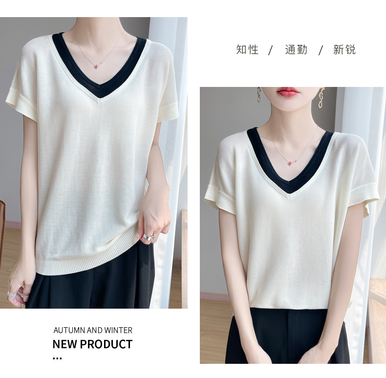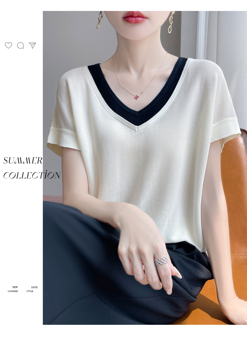 天丝双V领假两件短袖XK035