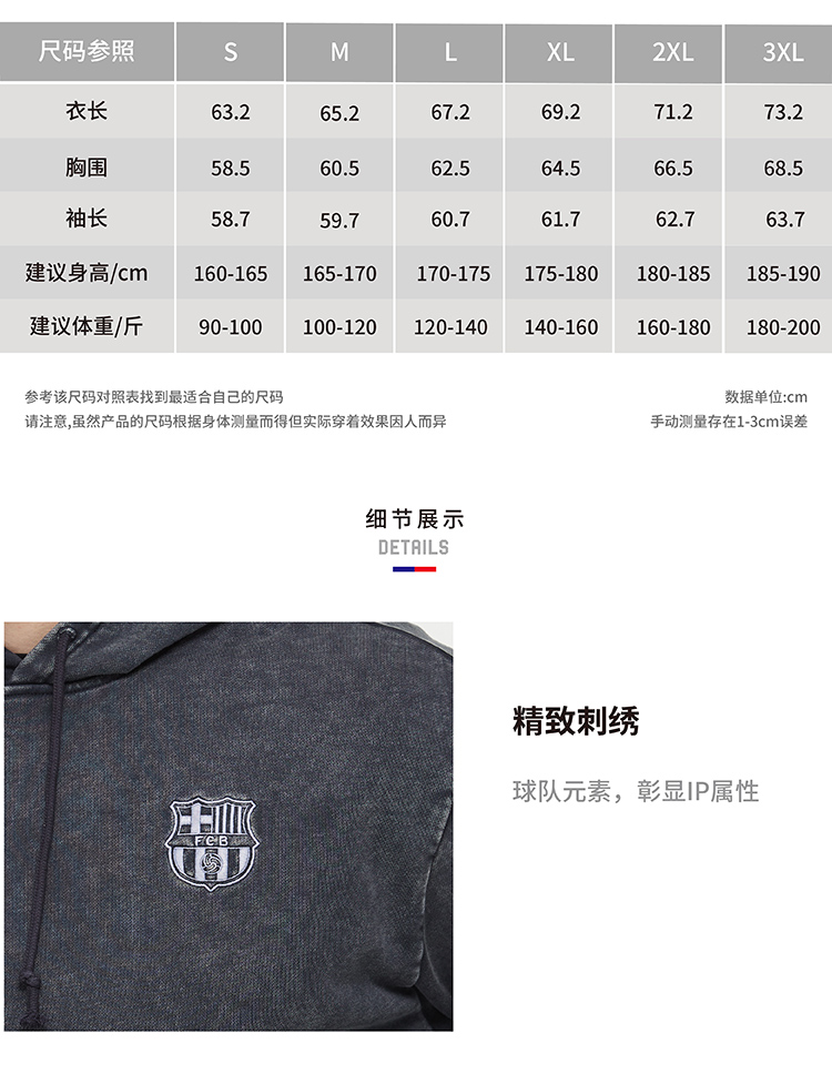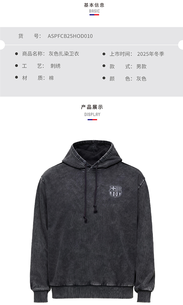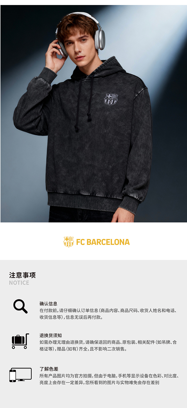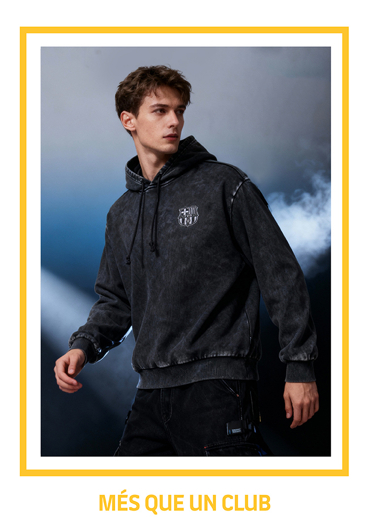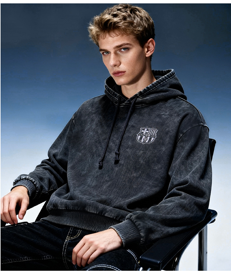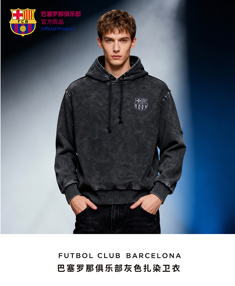 【官方正版】巴塞罗那俱乐部|巴萨灰色水洗卫衣扎染潮流连帽卫衣