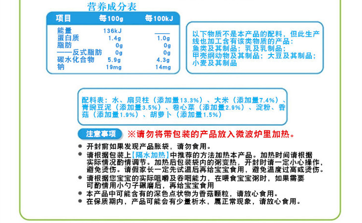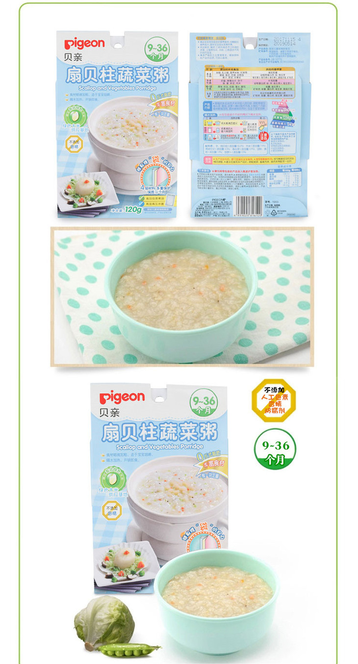 【一般贸易】 贝亲 辅食粥 扇贝柱蔬菜粥 9-36个月 120g/袋