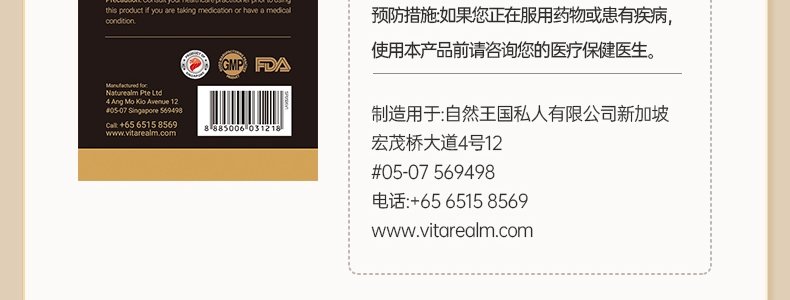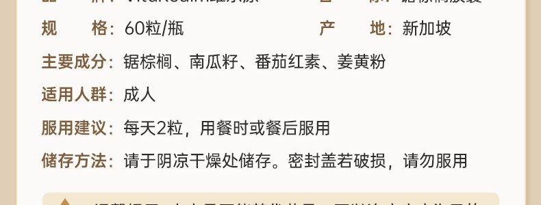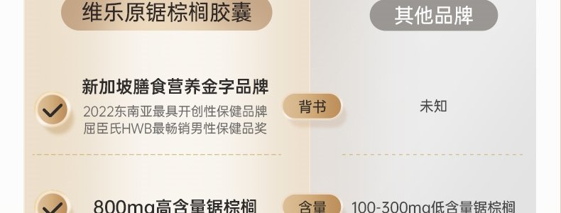 【保税】新加坡 维乐原(VitaRealm)锯棕榈植物精华 60粒/盒
