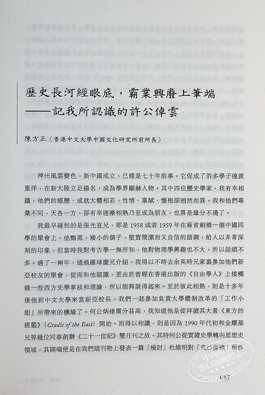 附錄則意在從先生自身的視角,“交代”其學術淵源;另附《許倬雲先生平生事略》《許倬雲先生作品存目》《許倬雲先生未刊稿存目》及《相關評論存目》,亦可由此一窺前輩學人風采,及先生平生行履之所及。書末許先生自己的回憶,也勾勒了漢學發展的一條清晰脈絡。