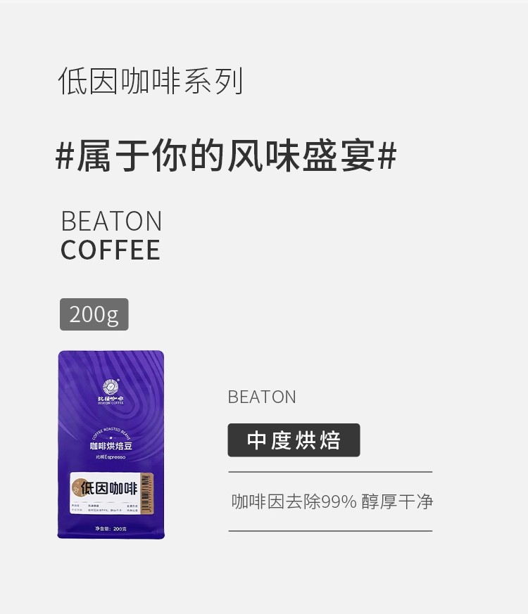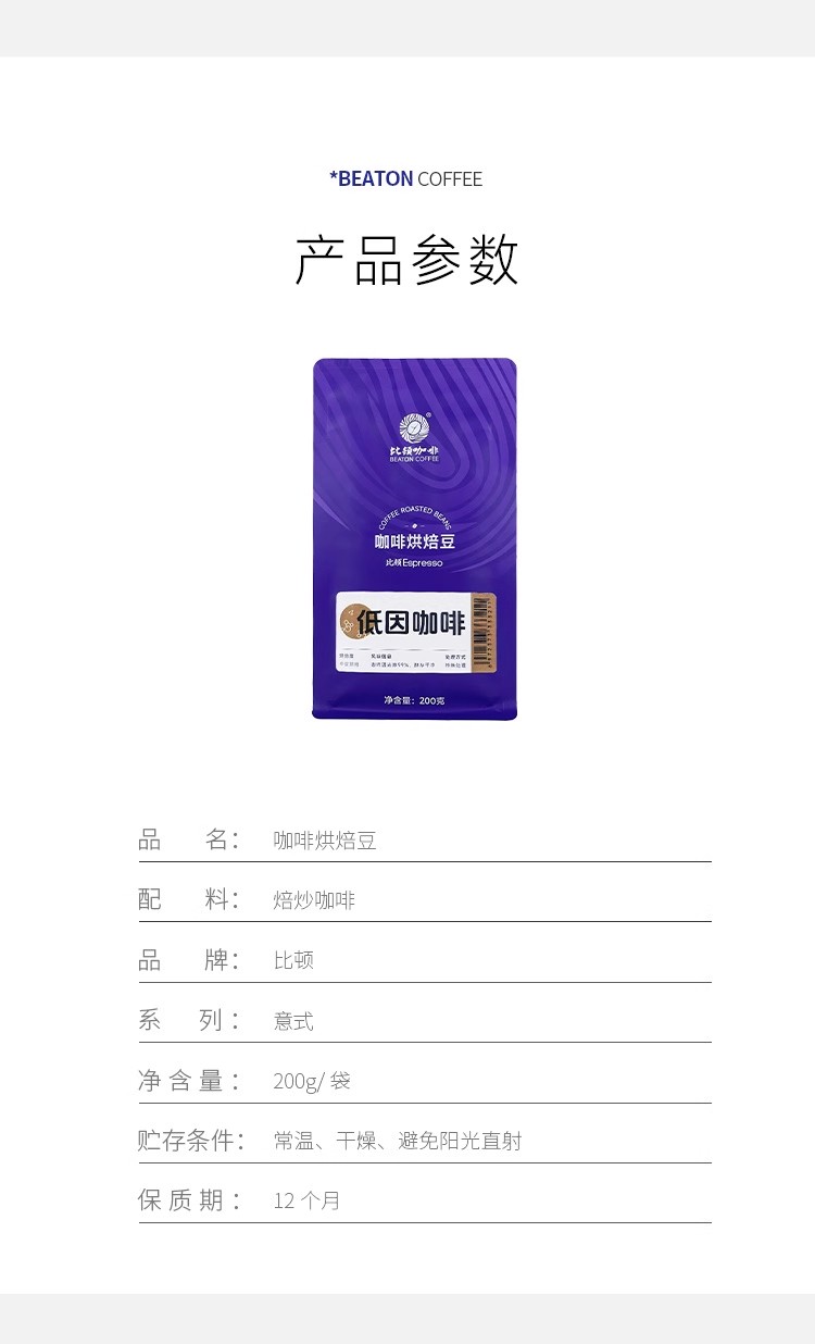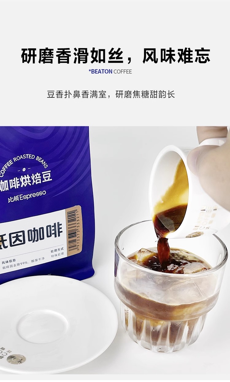 比顿咖啡 低因咖啡手冲可研磨新鲜烘焙中度烘培200g咖啡豆