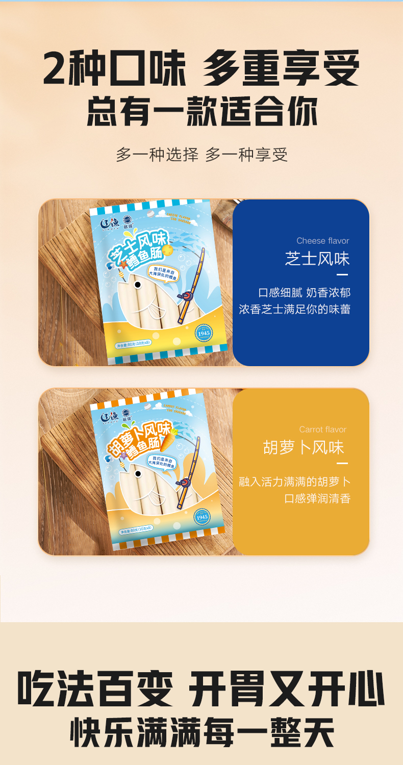 [辽渔远洋]儿童鳕鱼肠80g/袋(原味、芝士风味、玉米风味、胡萝卜风味、奶香风味)