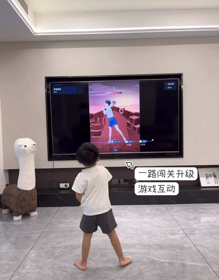 AI体感交互,互动PK,可以激发小朋友的运动兴趣。