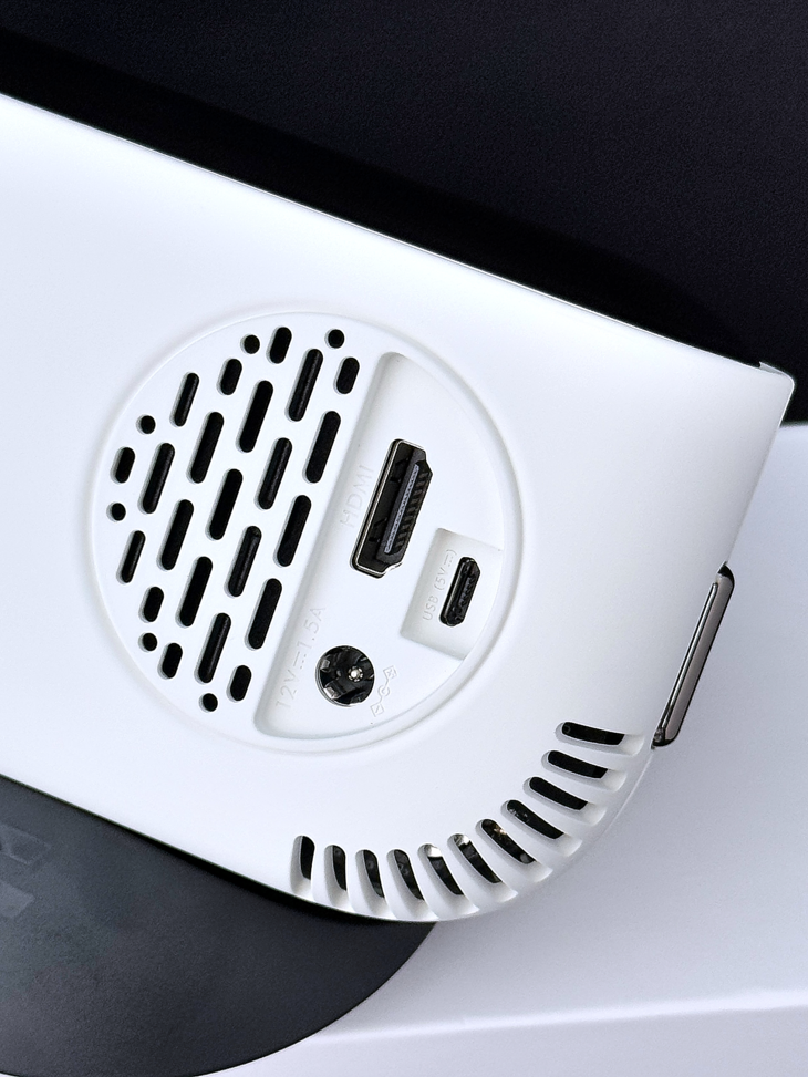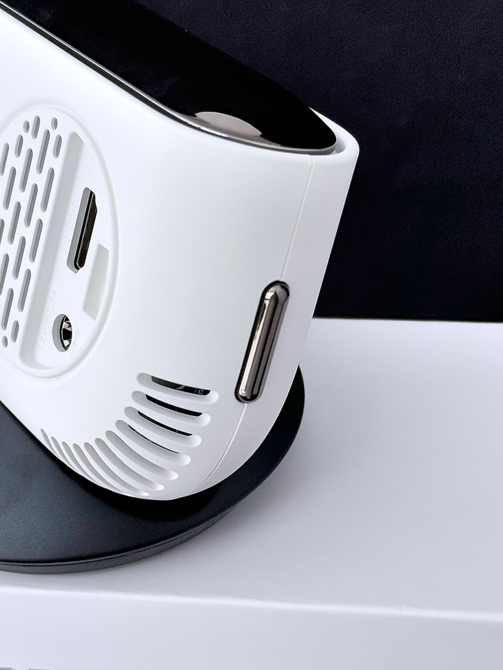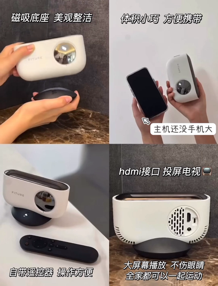 体积小巧,主机还没有手机大,非常方便携带,磁吸底座,美观整洁。 自带遥控器,hdmi接口,投屏到电视上或者屏幕上都可以使用,大屏播放,不伤眼睛。