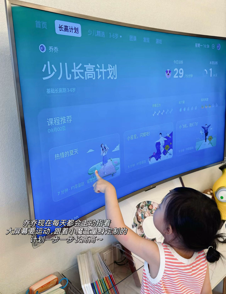 -04- 大屏护眼 妈妈放心 小巧不占地,居家轻松投屏 相比上早教,个人觉得这个AI运动魔盒更实用,而且还省钱! 自从买了后,每天不用我提醒,宝宝就主动跟着跳30-60分钟,科学追高、爱上运动就这么简单。