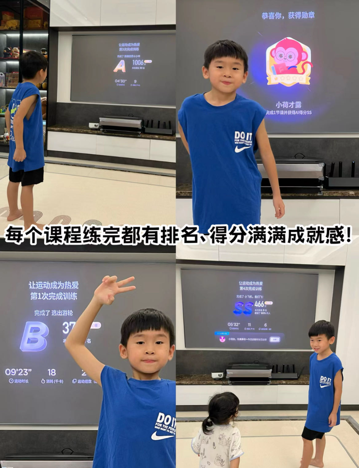 这台AI运动魔盒的里面的丰富课程,可以通过不断地练习和尝试,来掌握各种高难度的动作,锻炼肌肉力量,提高身体灵活性和反应速度。