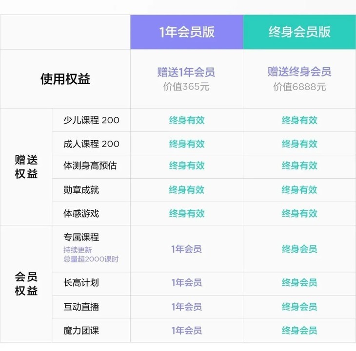 现在下单就送一年会员! 前200名还额外赠送价值129元的无绳跳绳+身高尺! 内容包含了会员专属课程(持续更新,总量超2000课时)+长高计划+互动直播+魔力团课。