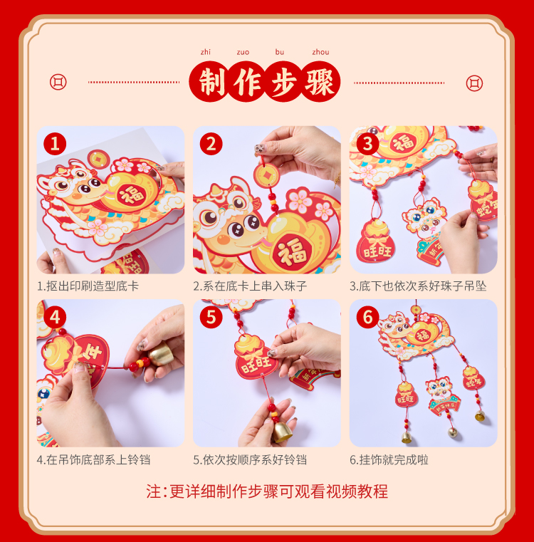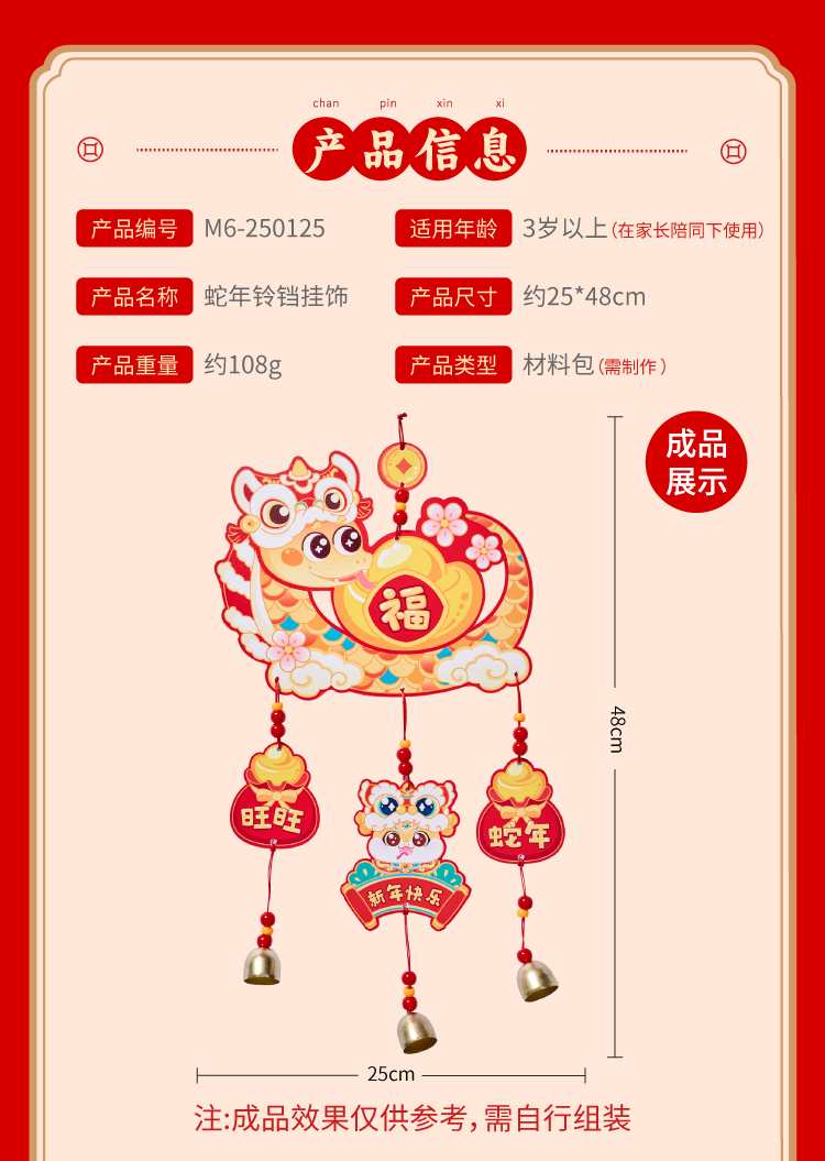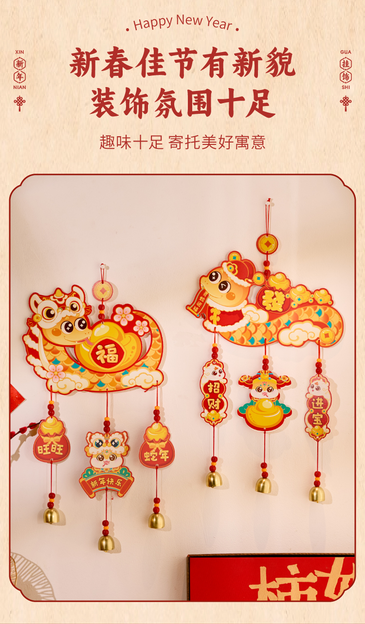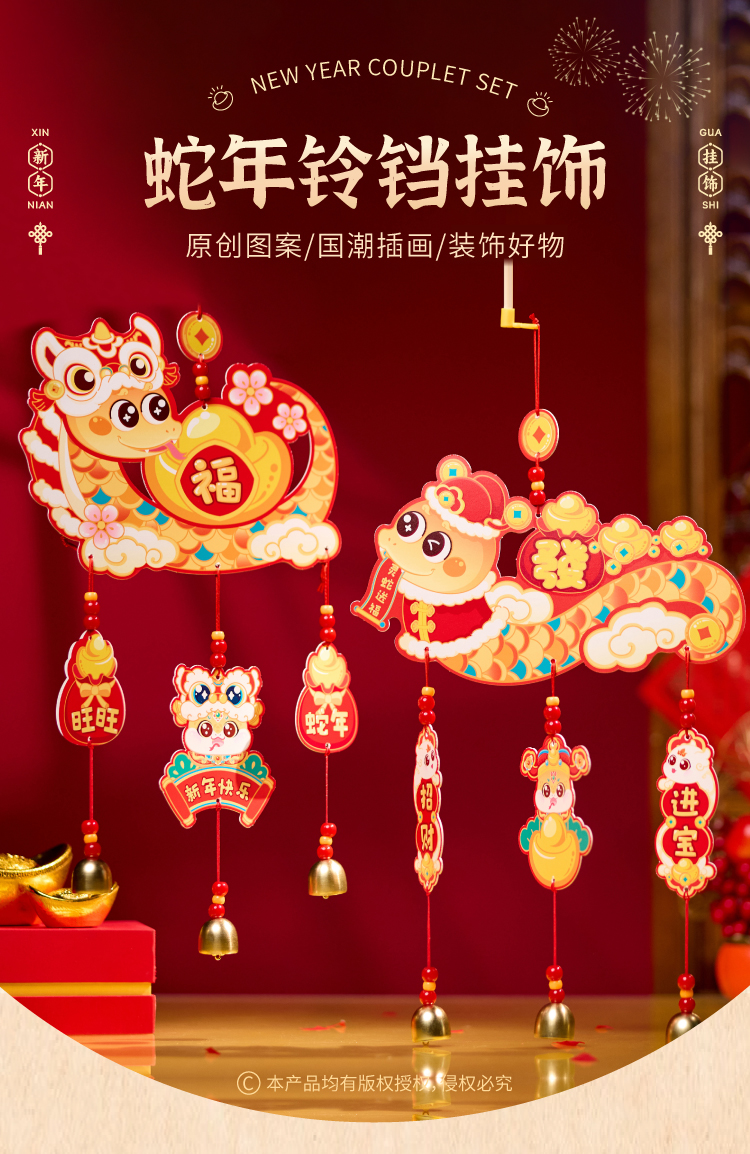 新年春节元旦蛇年铃铛挂饰手工diy儿童制作材料包幼儿园装饰挂件