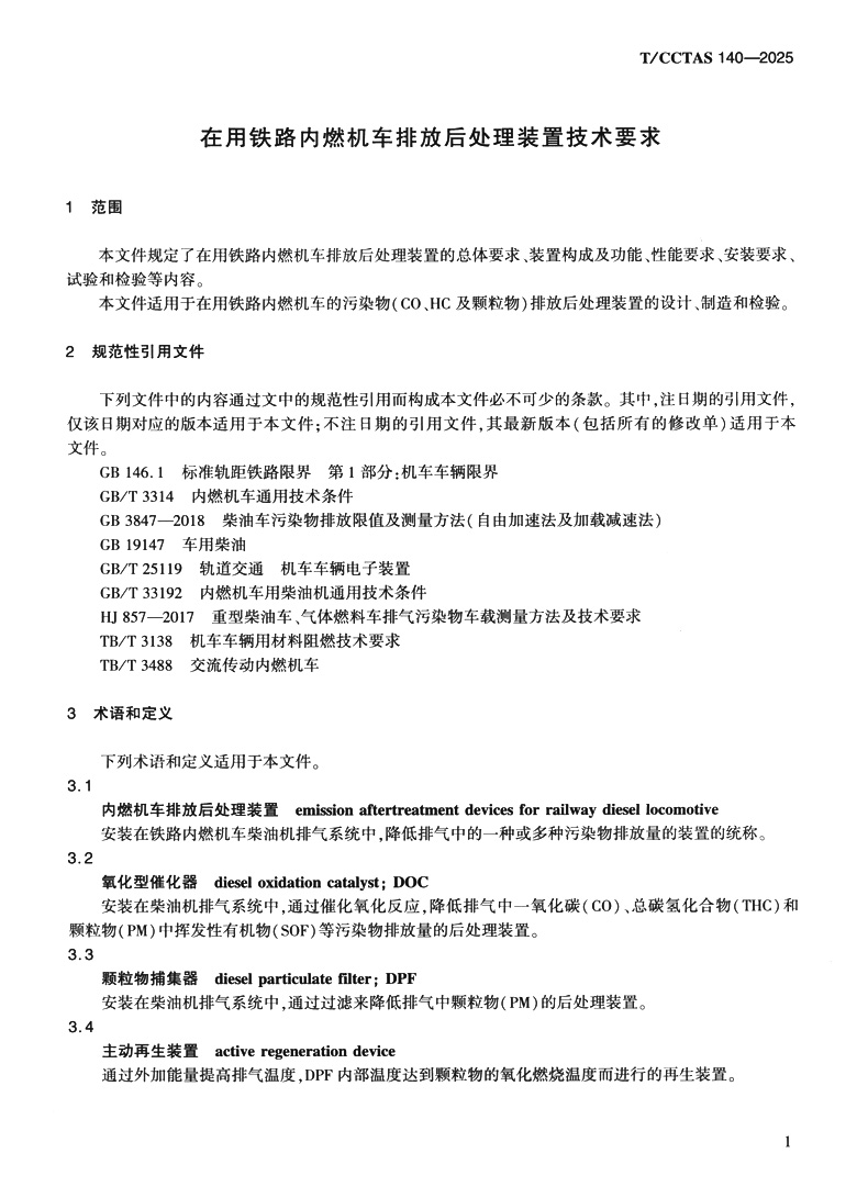 书名:在用铁路内燃机车排放后处理装置技术要求T/CCTAS 140—2025