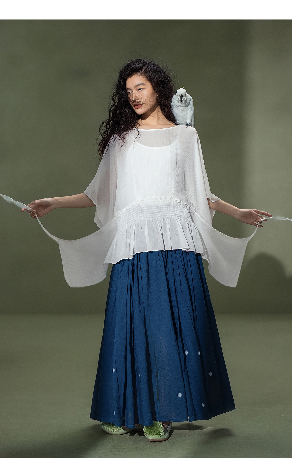 【林栖设计小店】御风轻舞|优雅多色不规则飞片2026夏新款修身衬衣两件套