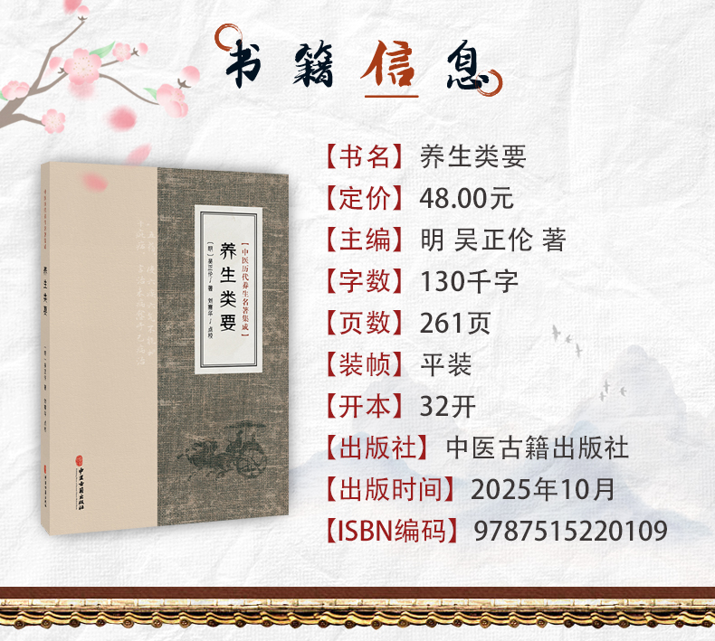 养生类要 中医历代养生名著集成 明 吴正伦 著 刘寨华 点校 四季服食各用引子 食物所忌所宜 9787515220109 中医古籍出版社