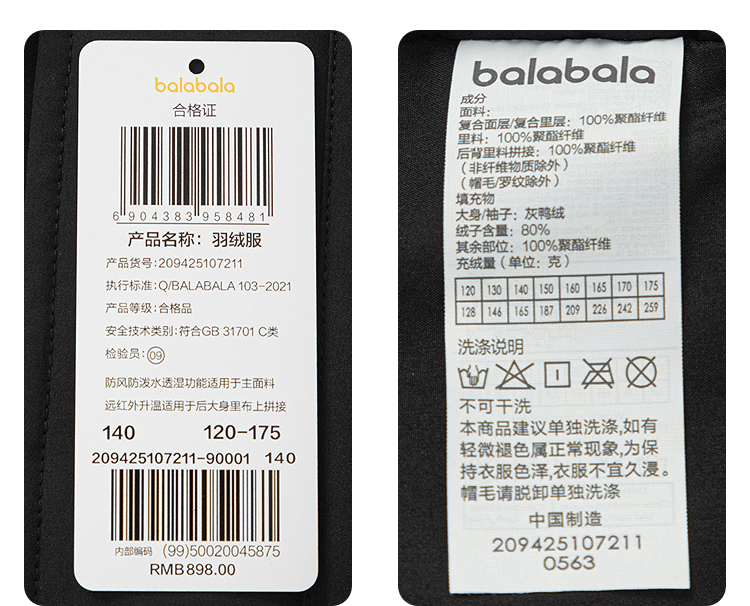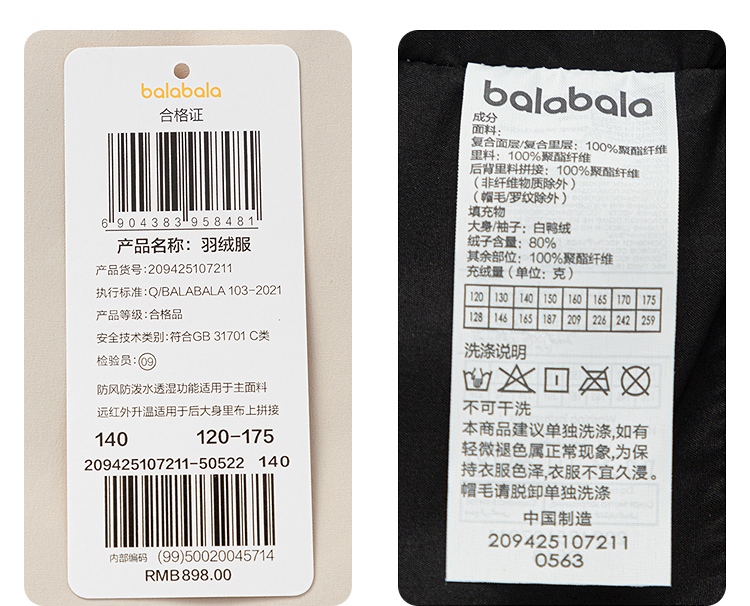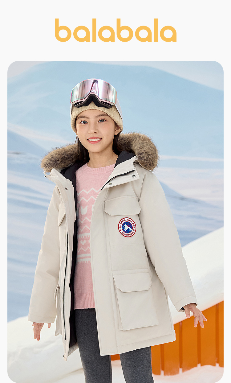 巴拉巴拉balaOne童装儿童羽绒服男女童秋冬新中长款毛领加厚2025