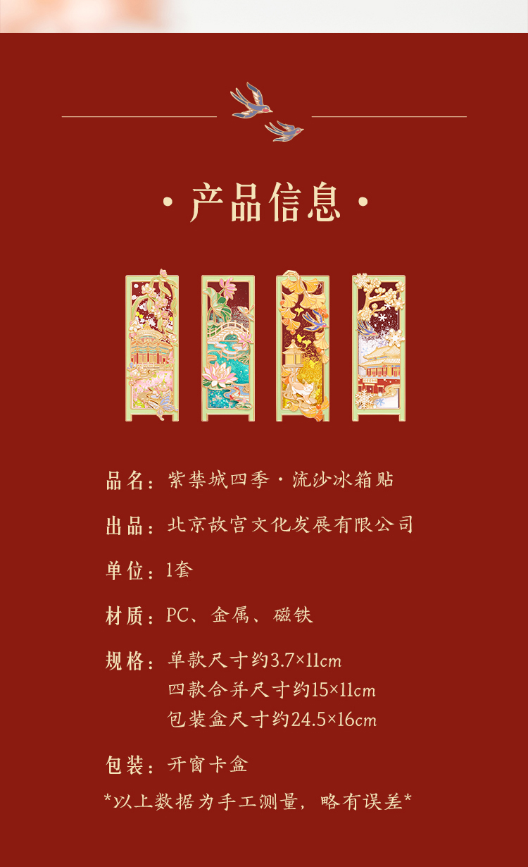 【故宫冰箱贴】紫禁城四季流沙冰箱贴博物馆文创北京旅游伴手礼纪念品