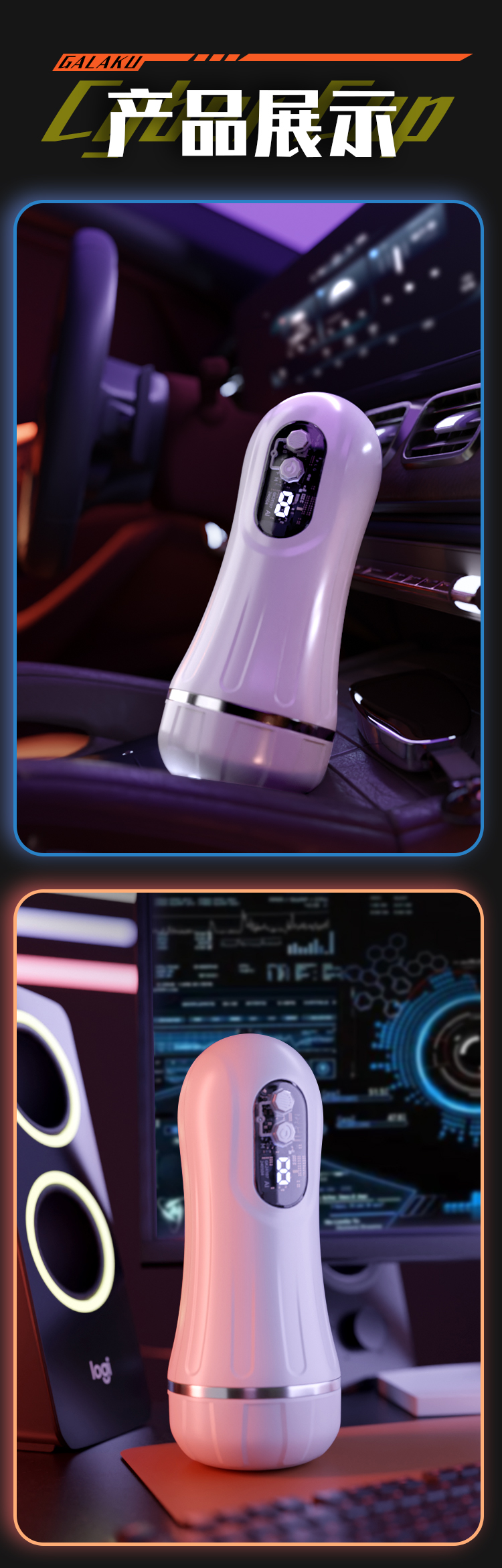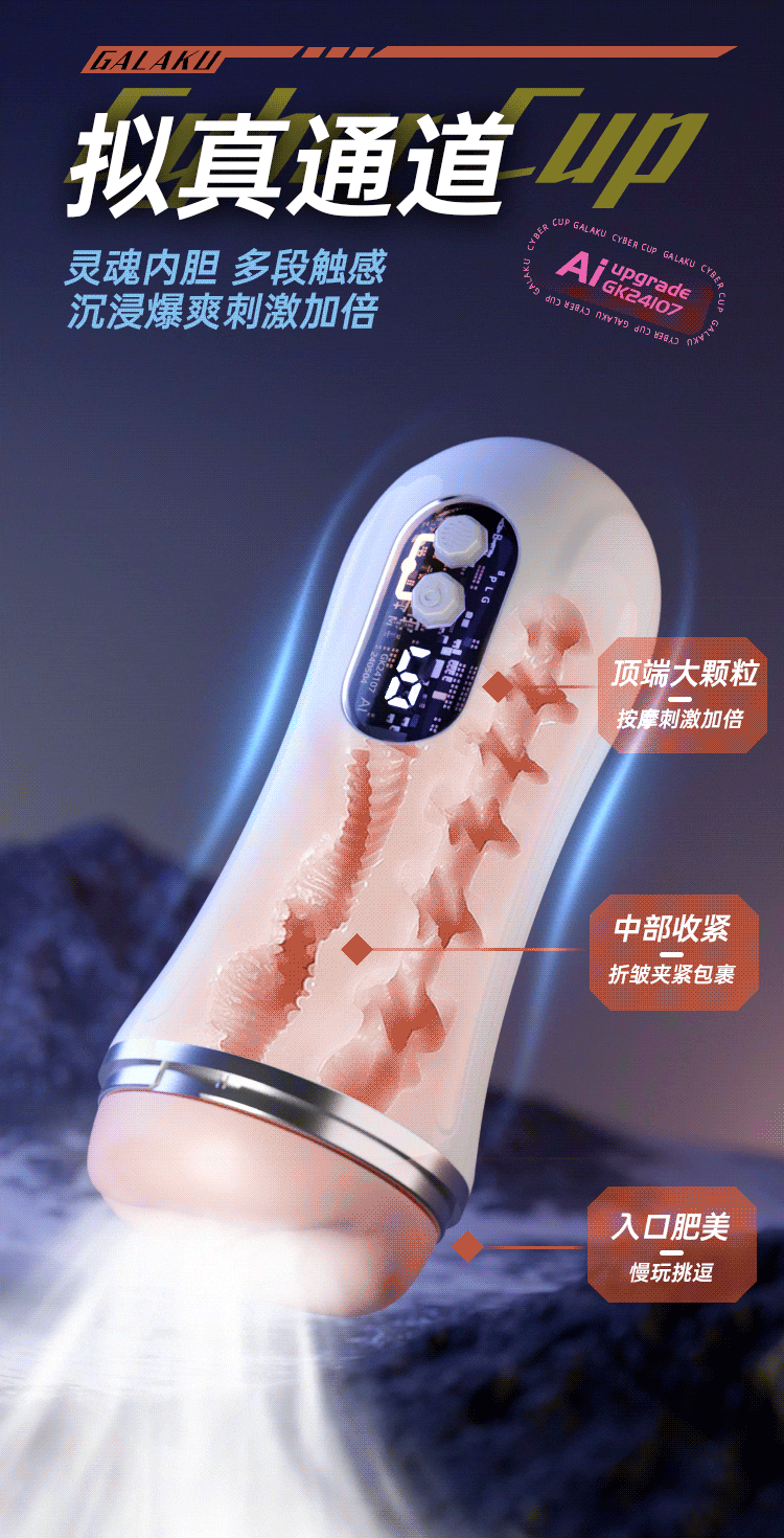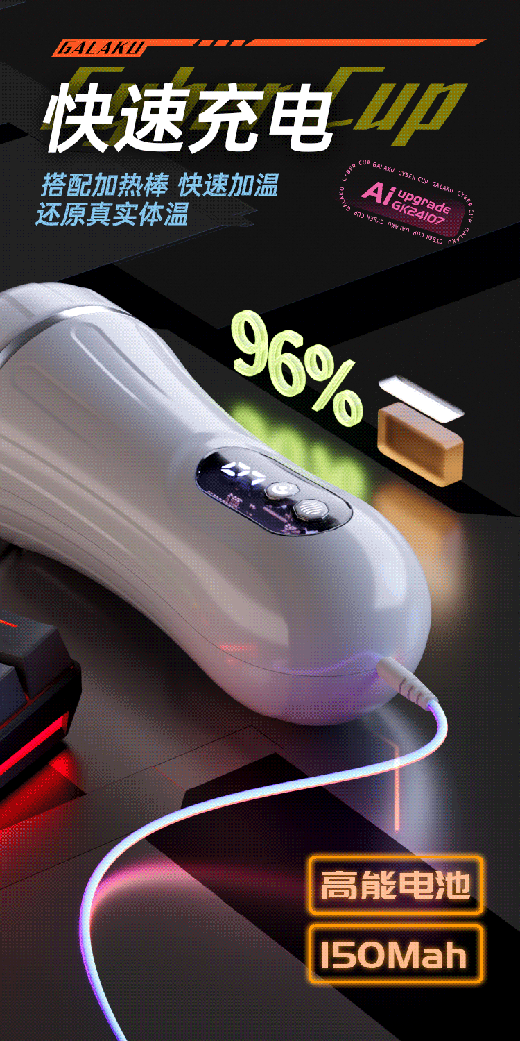 Galaku 赛博朋克飞机杯AI白色-显示屏/发声/震动自用自慰神器
