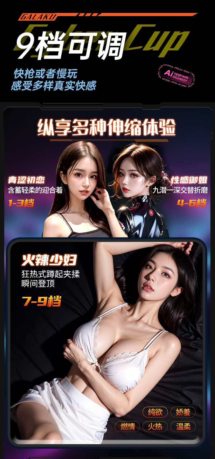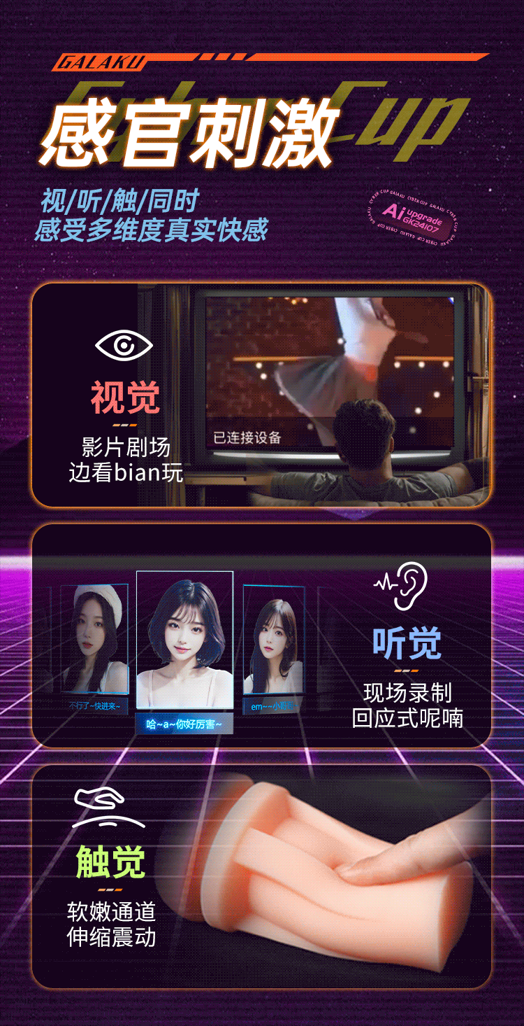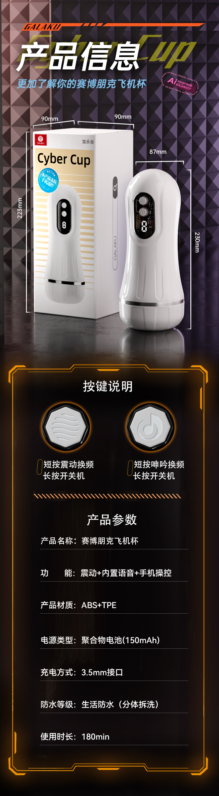 Galaku 赛博朋克飞机杯AI白色-显示屏/发声/震动自用自慰神器