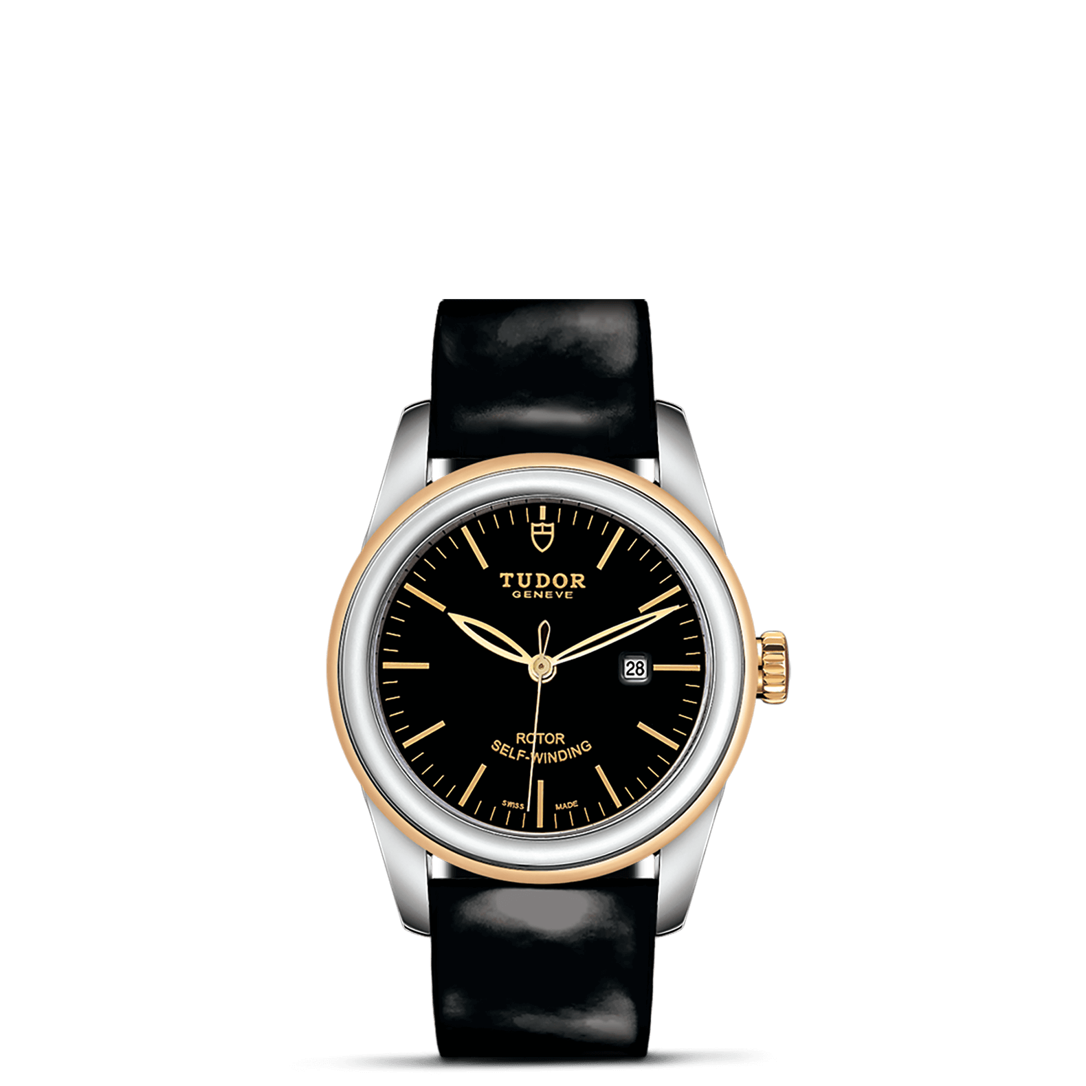 旋入式上链錶冠,饰以帝舵表标志;精钢覆有0.1毫米18K黄金薄层