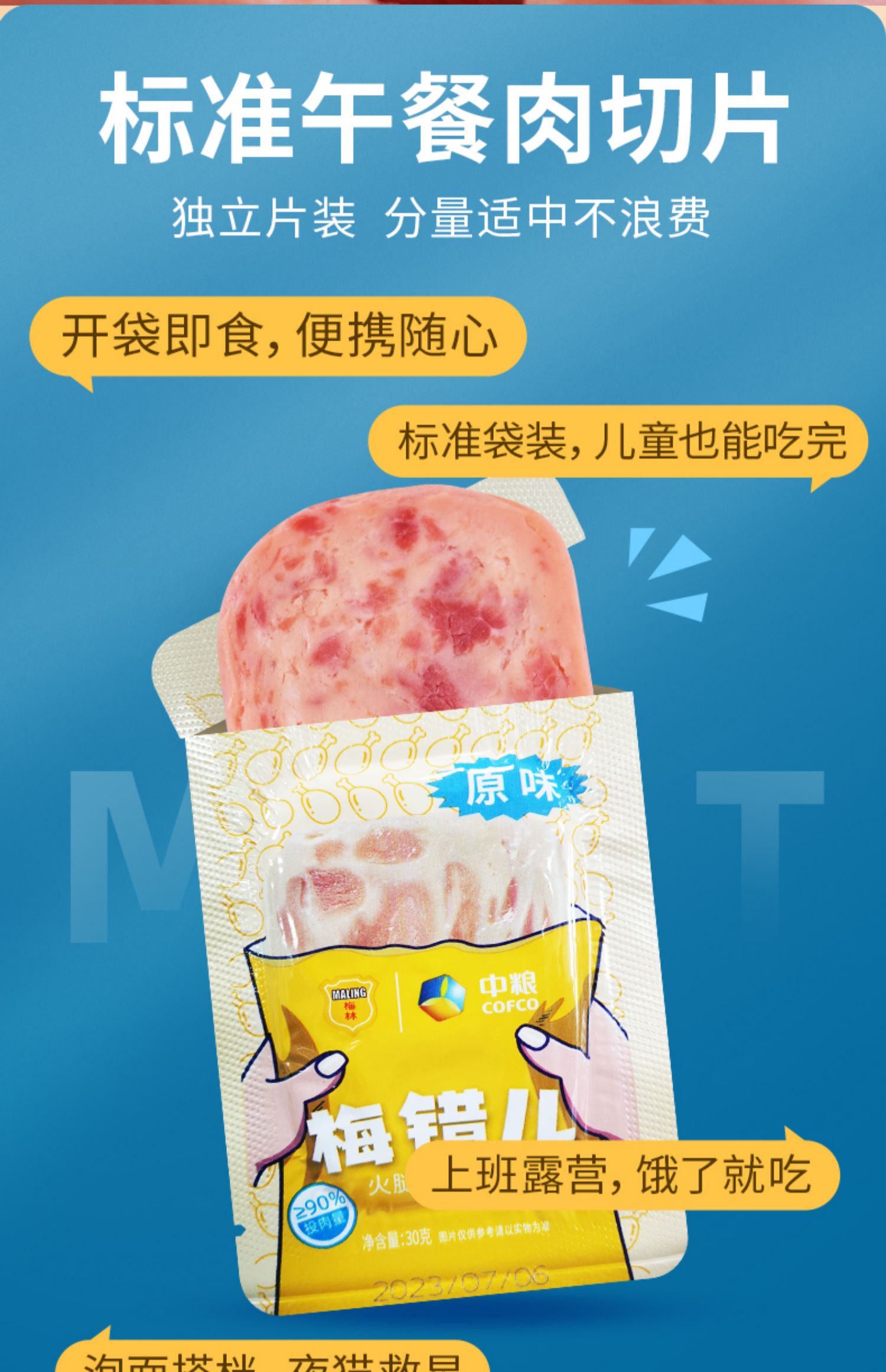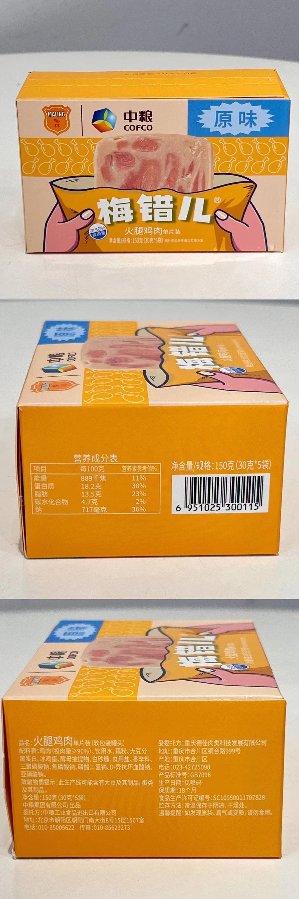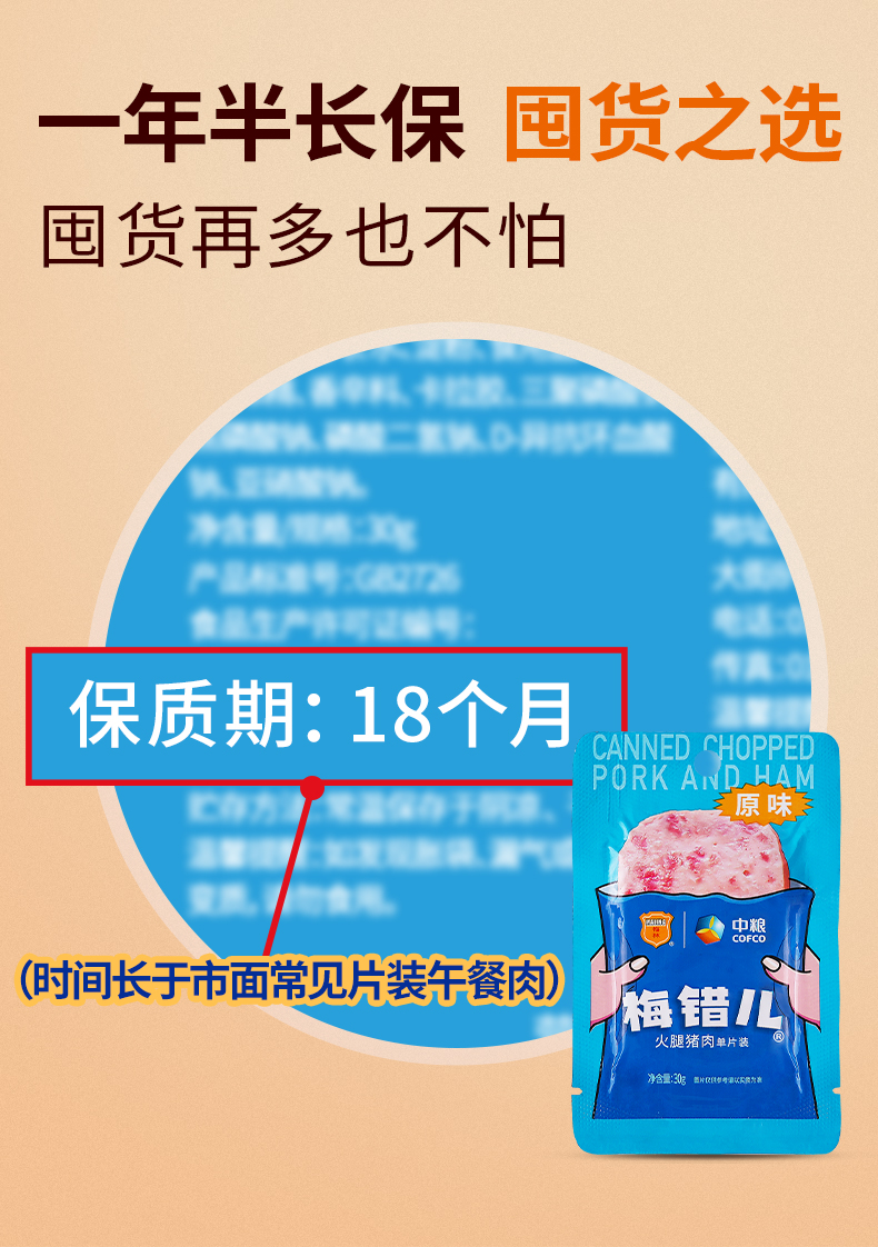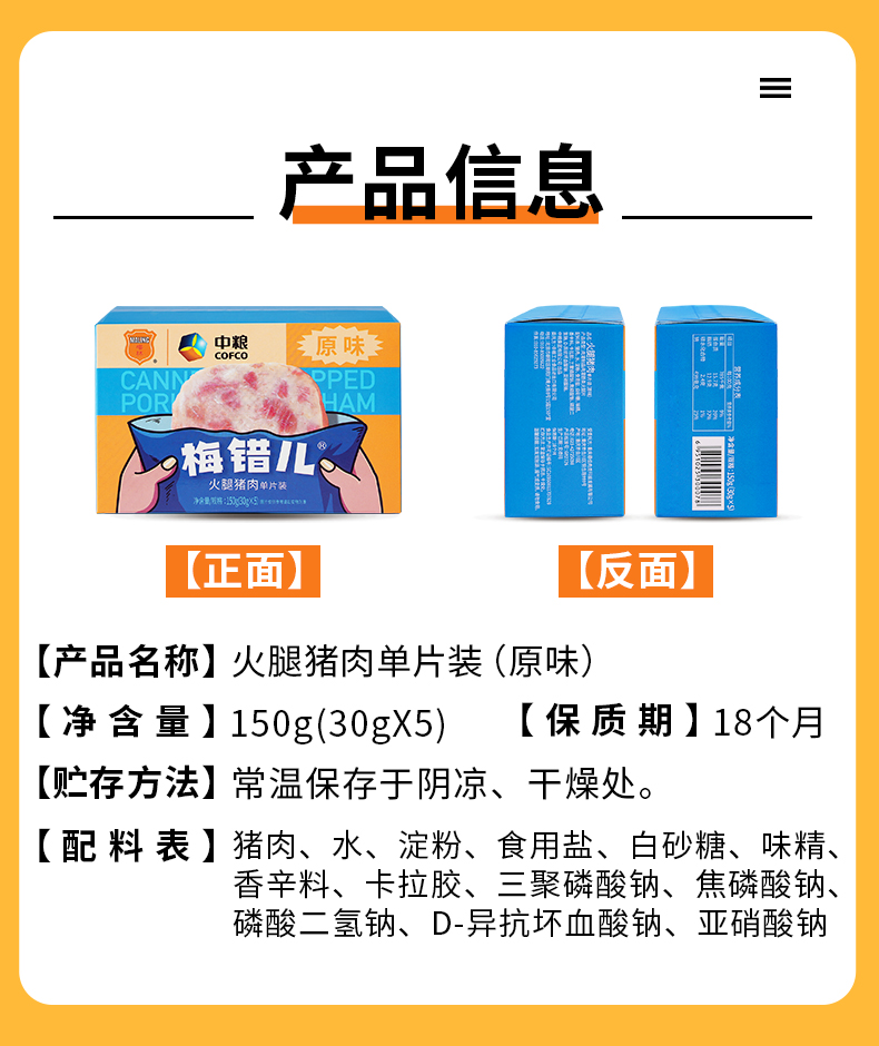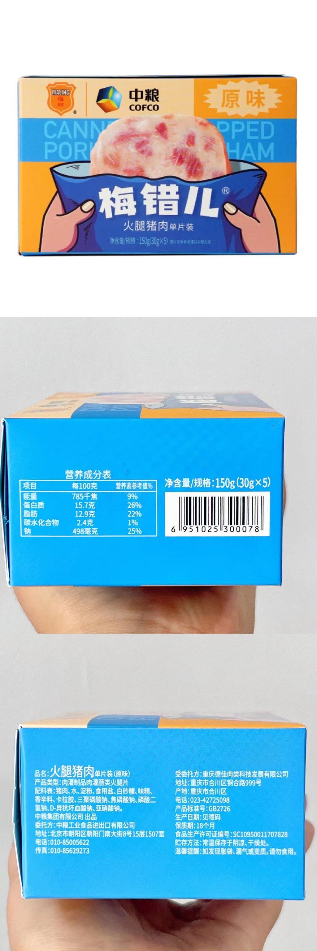 品名:午餐肉 规格:150g/盒(内含30g*5片)发货地/产地:大连、江苏、浙江等多仓随机/重庆