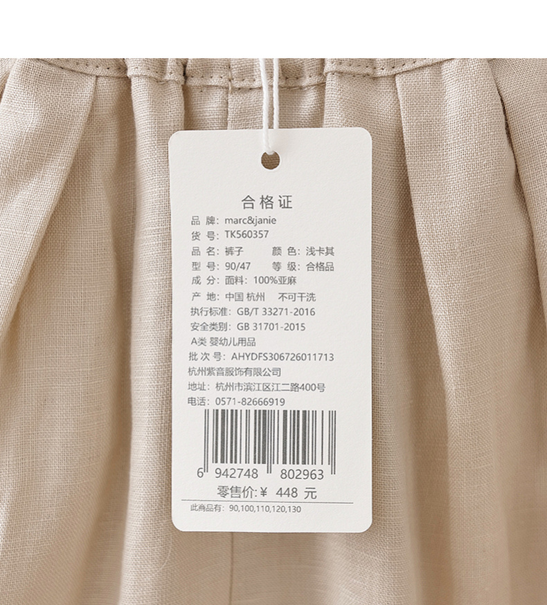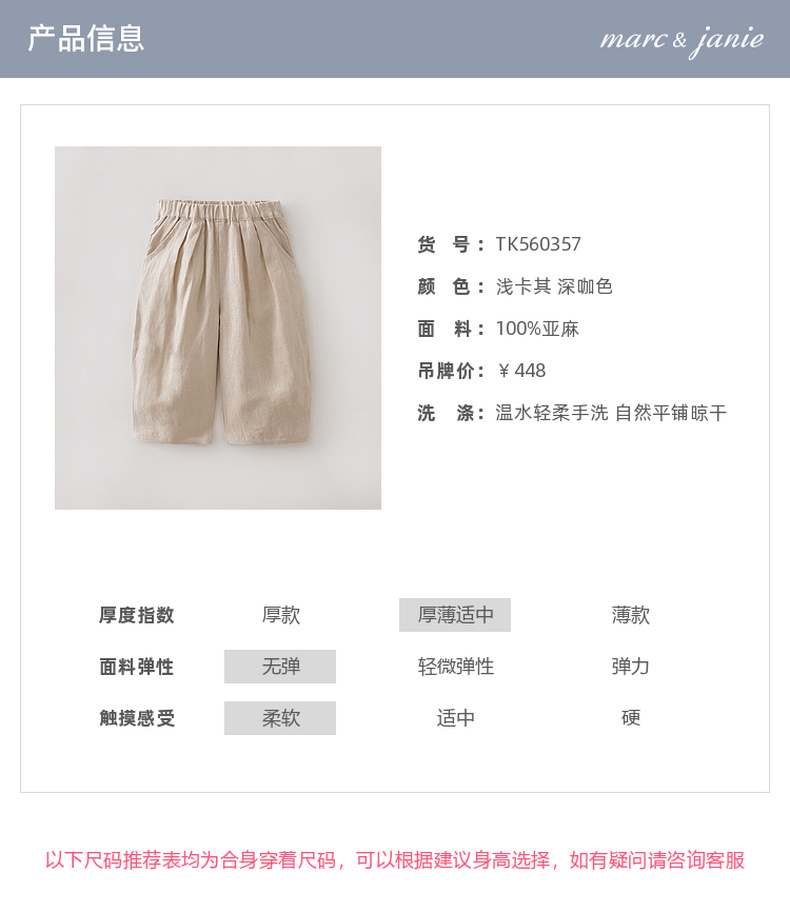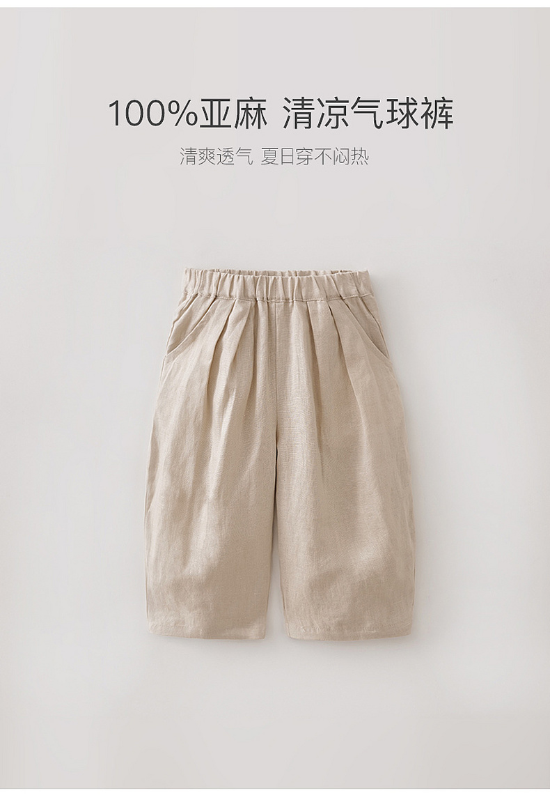 马克珍妮100%亚麻男童清凉气球裤2026年夏装新款560357