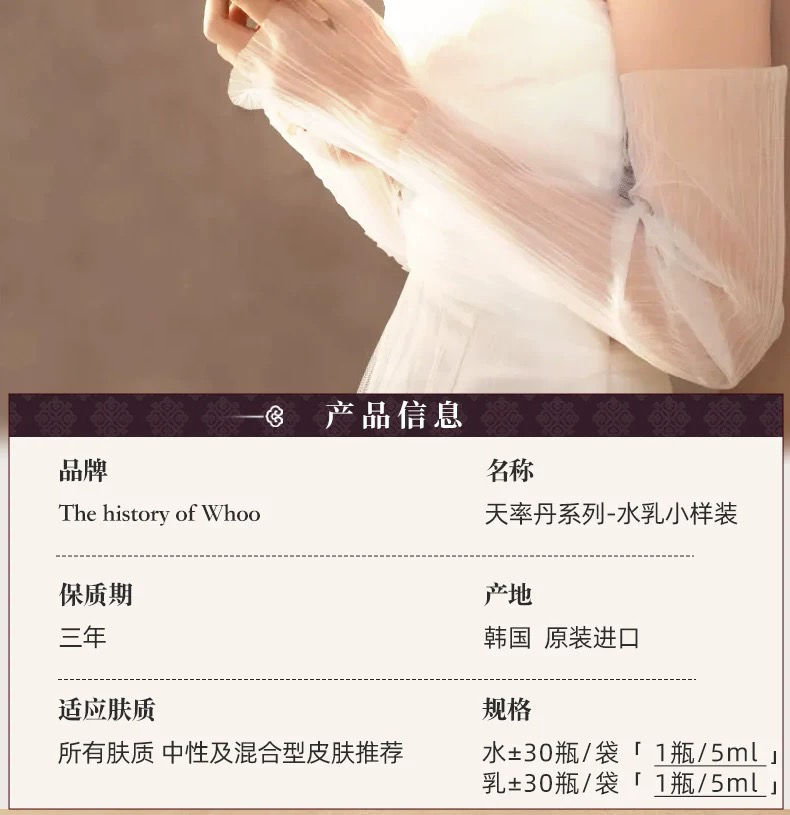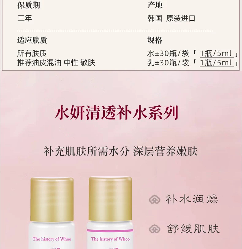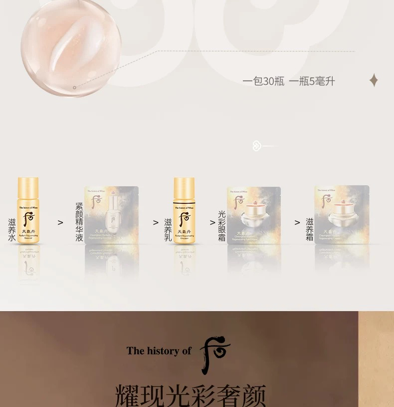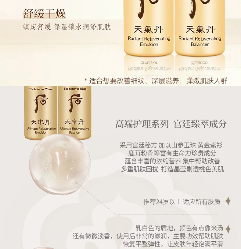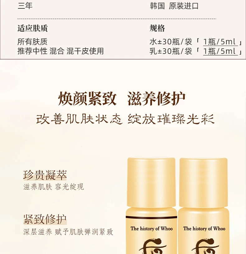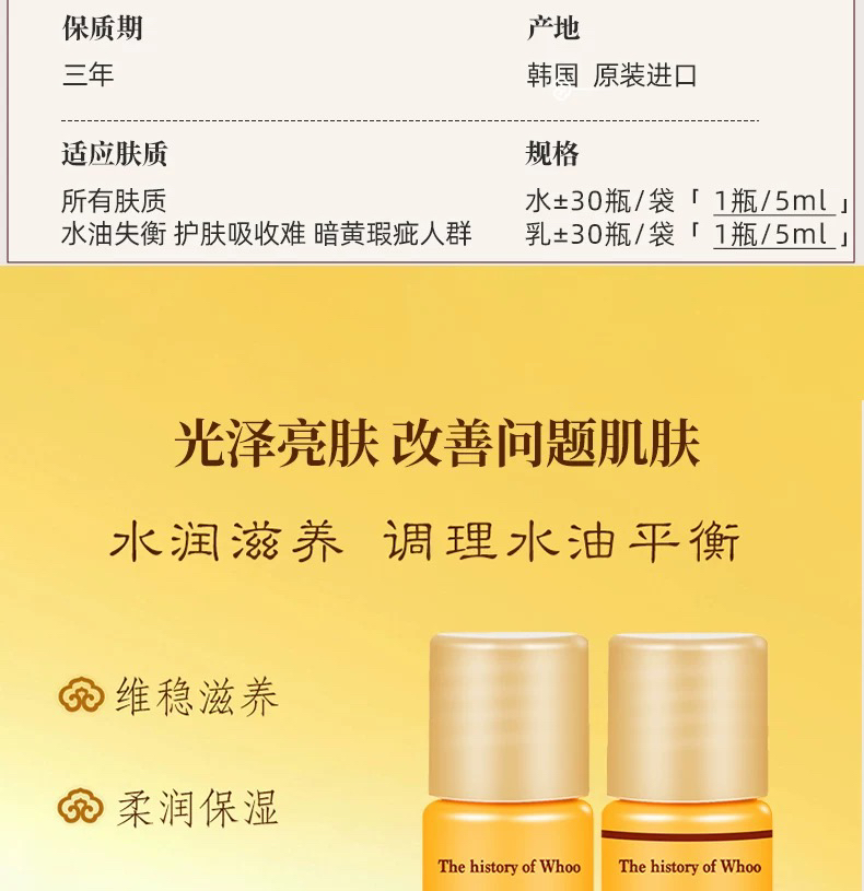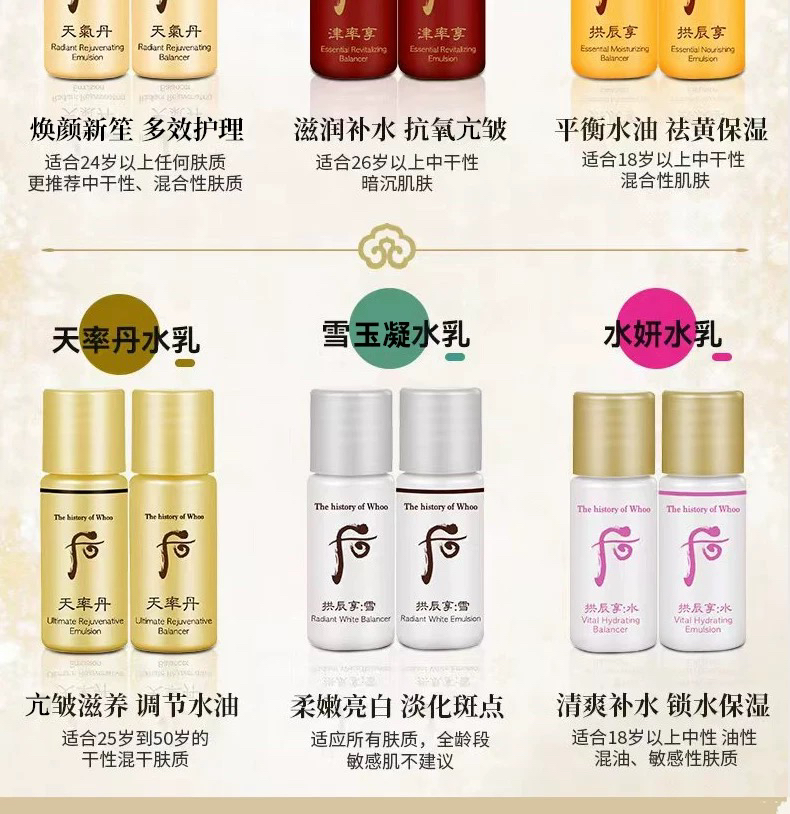 【专柜小样】韩国 WHOO后 天气丹/天率丹/津率享/拱辰享/ 爽肤水 乳液 5ml