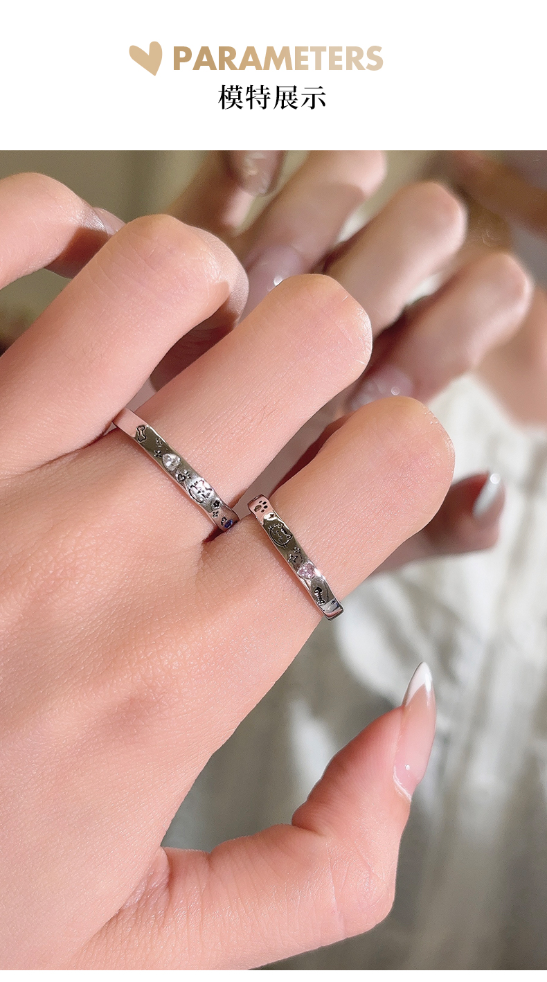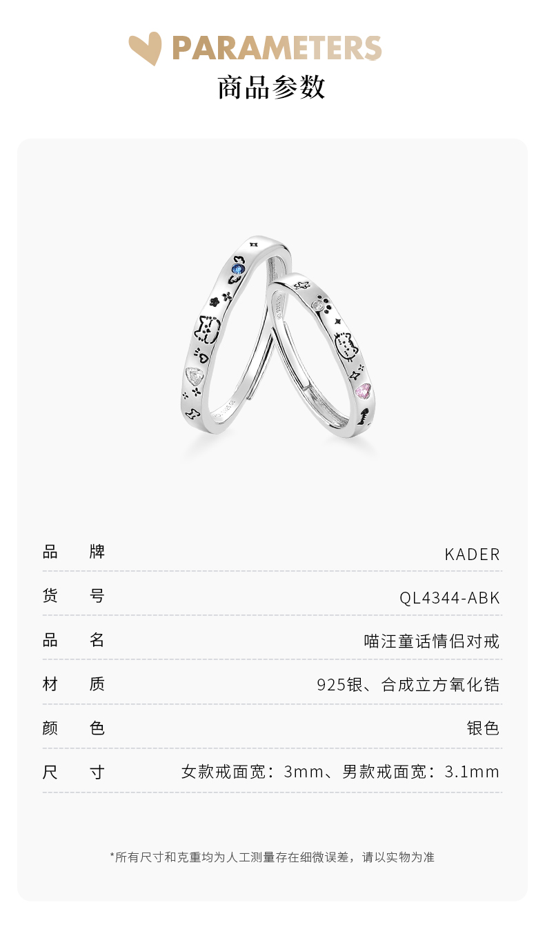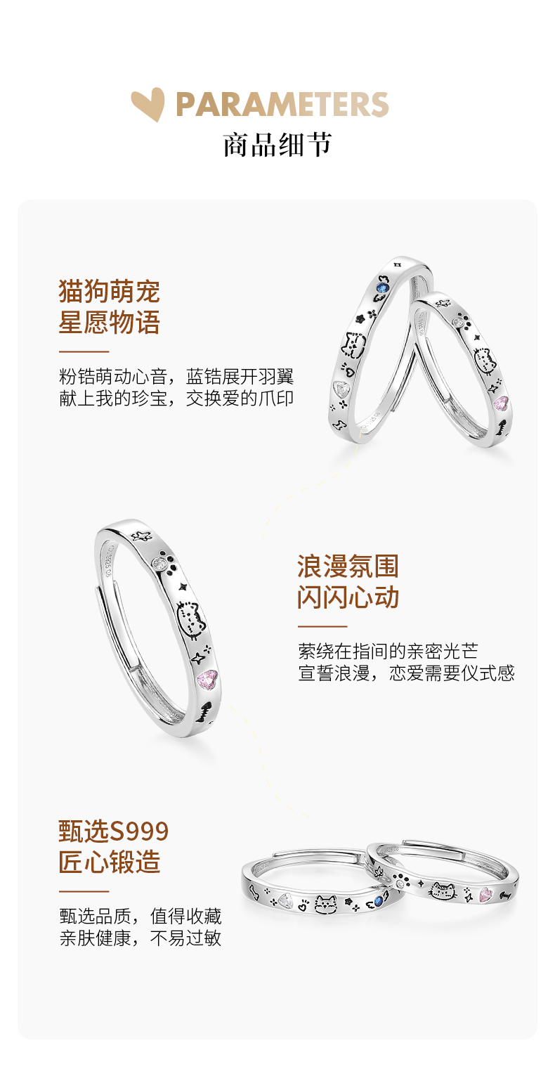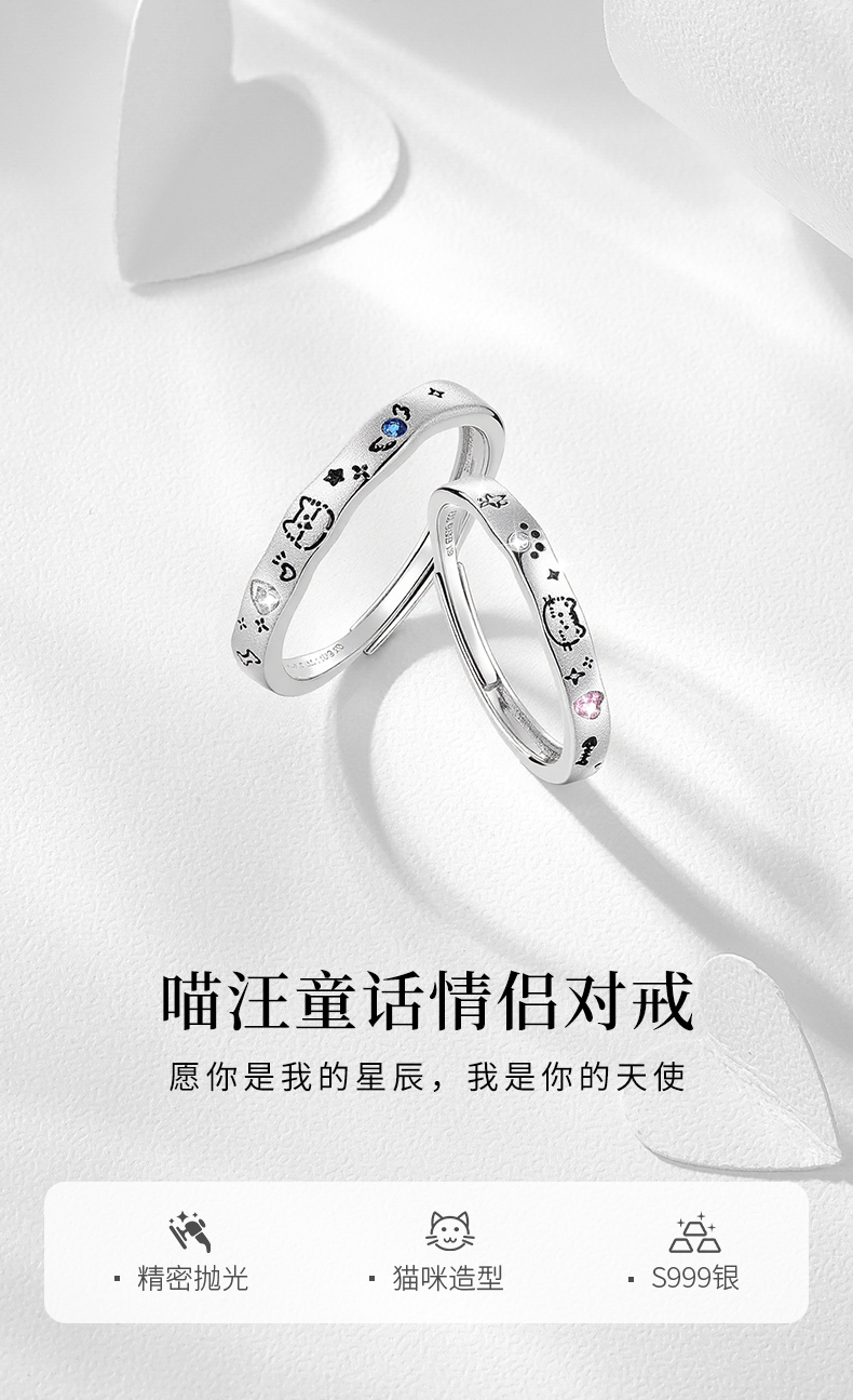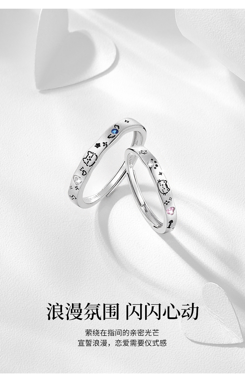 卡蒂罗KADER 喵汪童话情侣对戒 925银可爱俏皮寻觅宝藏甜蜜爱恋可调节戒 璀璨星光钟爱久久简约百搭 戒指