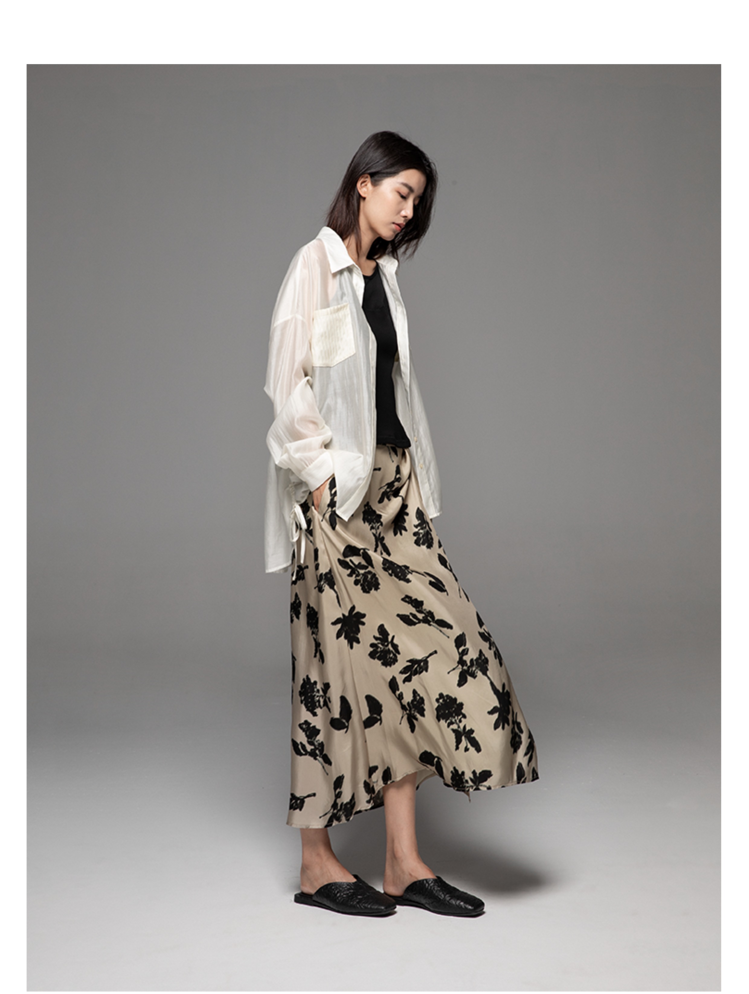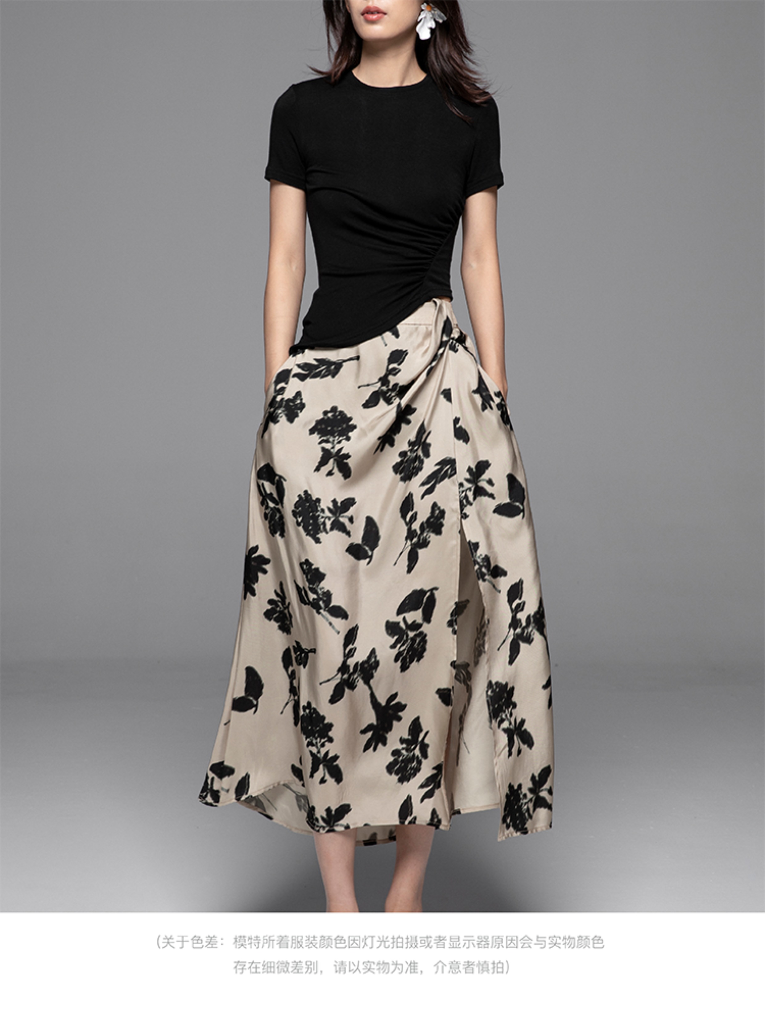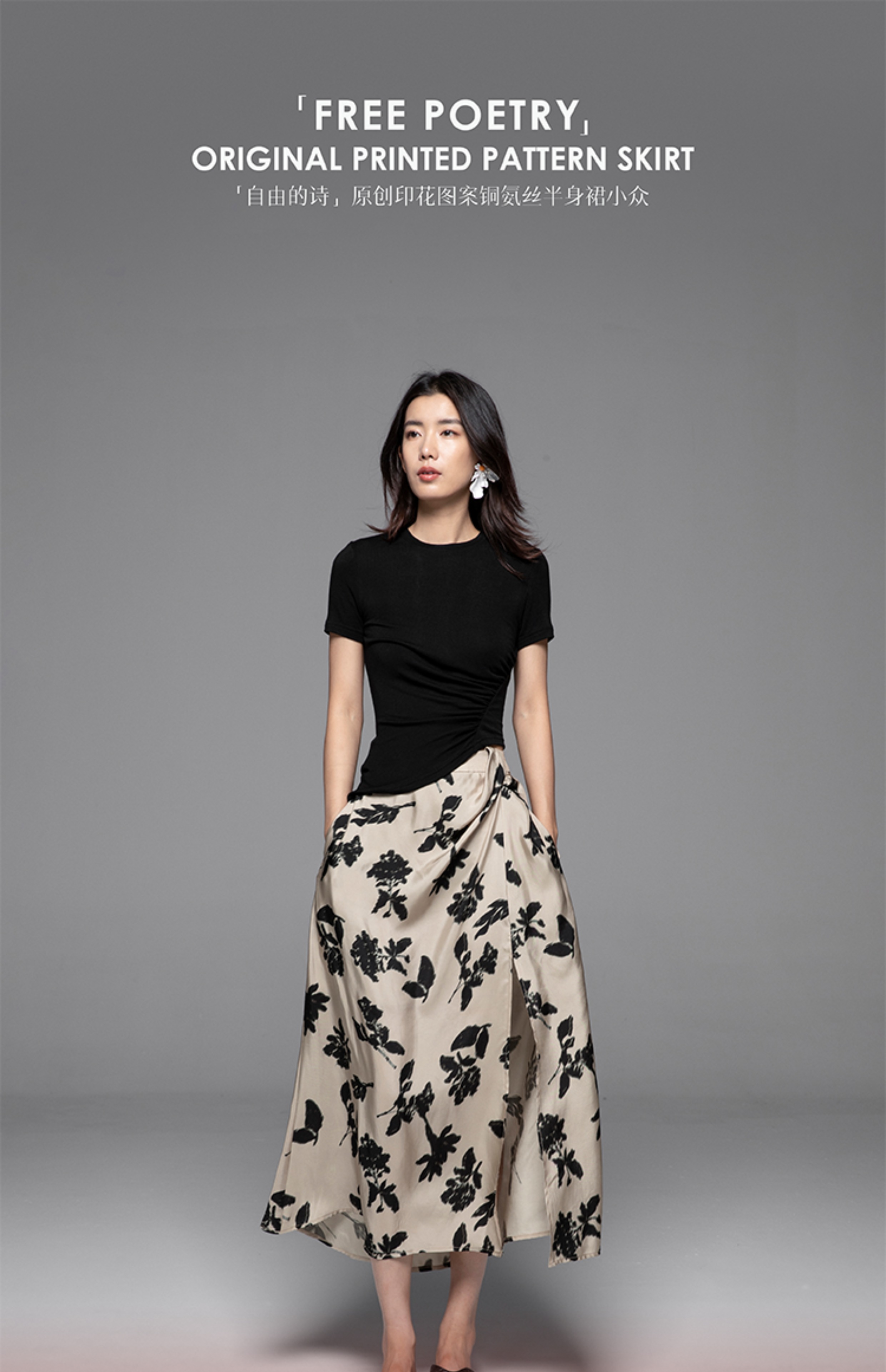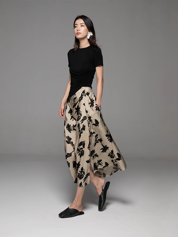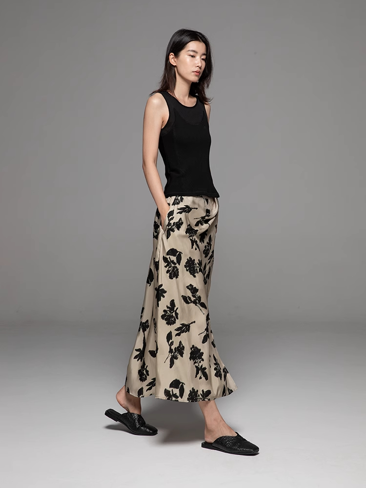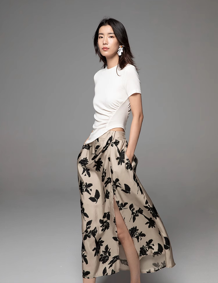 【博主推荐】自由的诗 24新夏铜氨丝印花女裙半身裙设计感侧开叉