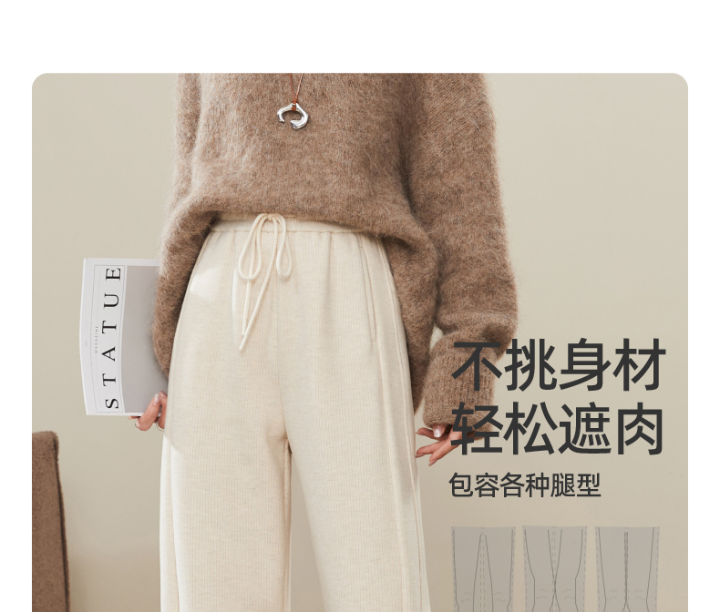 【暖绒绒-醋酸羊毛-香蕉裤】逸阳冬季加绒加厚高腰显瘦百搭休闲裤1864