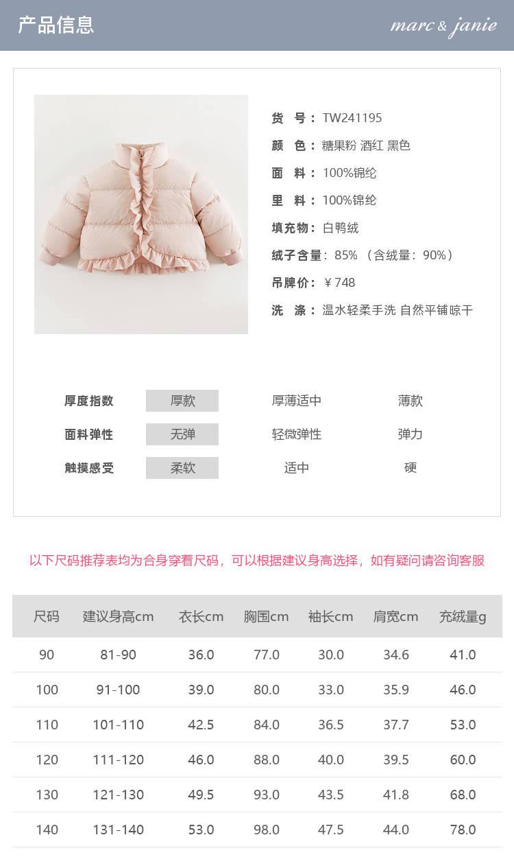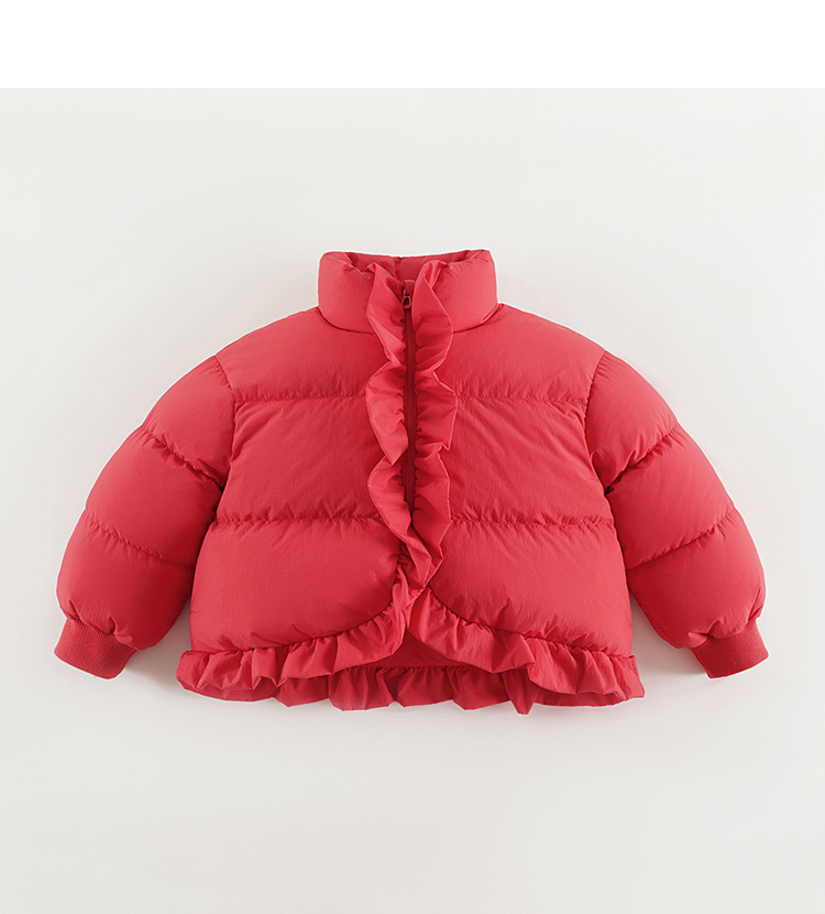 马克珍妮女童花边立领加厚保暖羽绒服儿童冬装新年款羽绒服241195