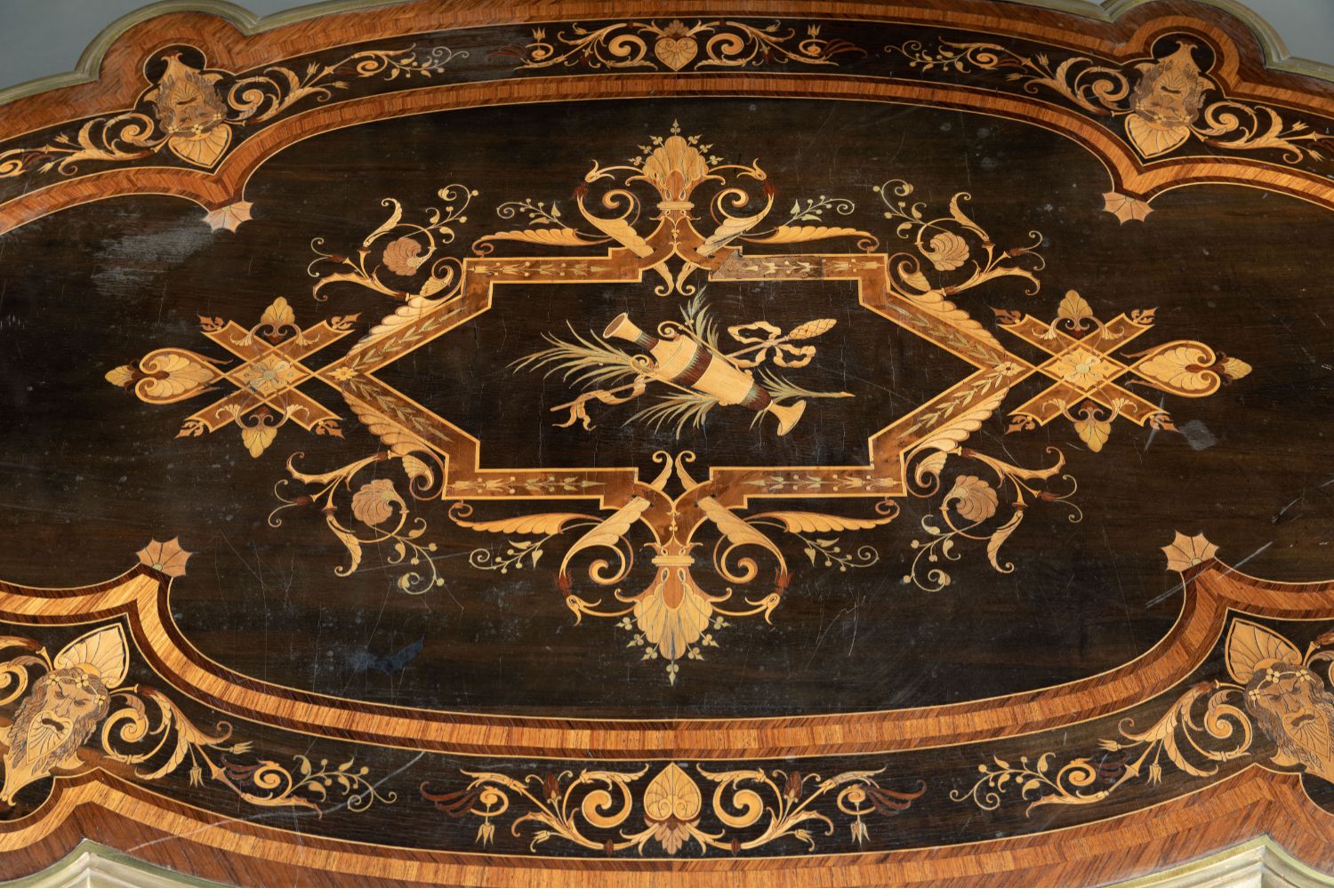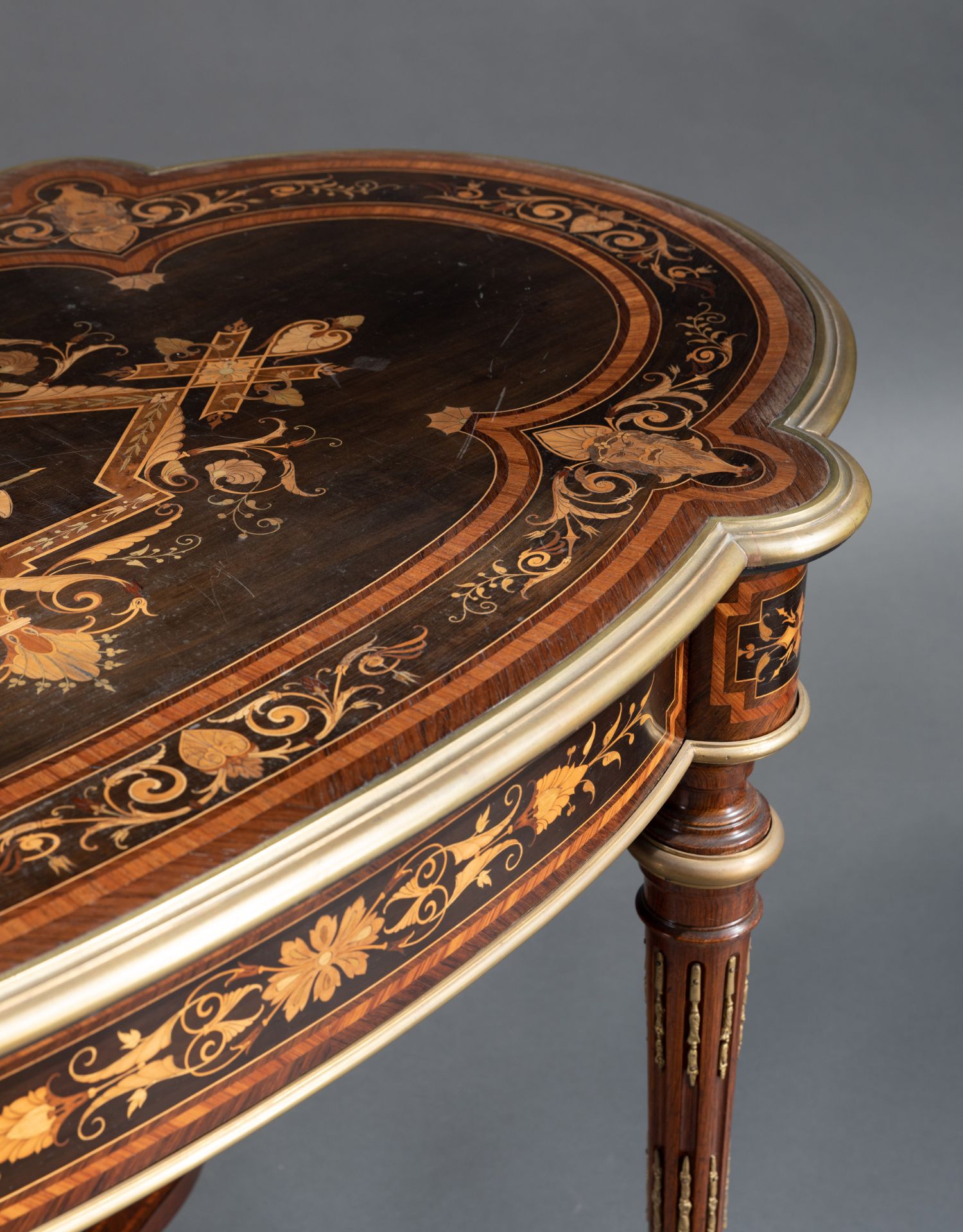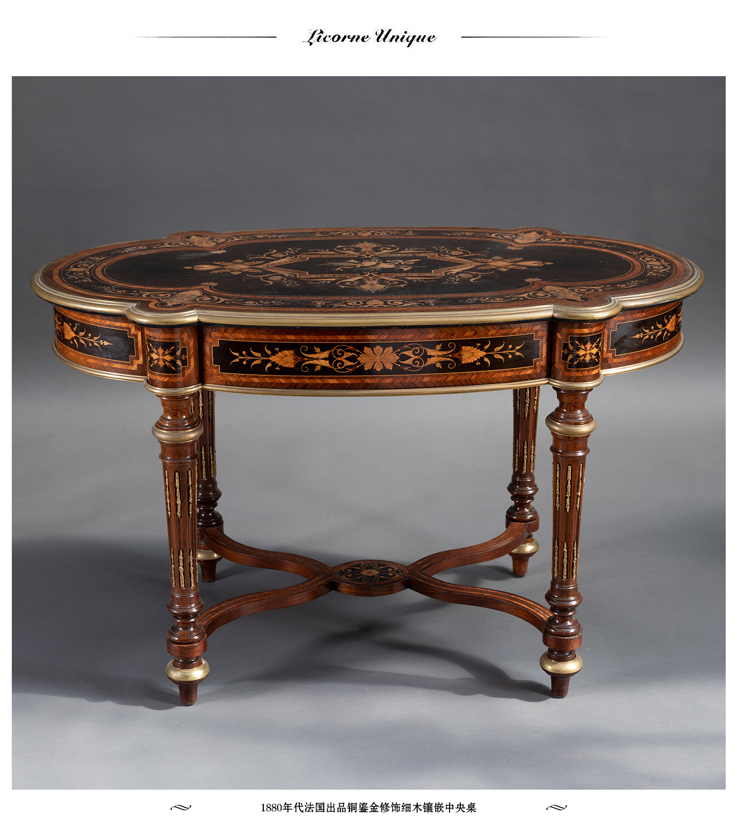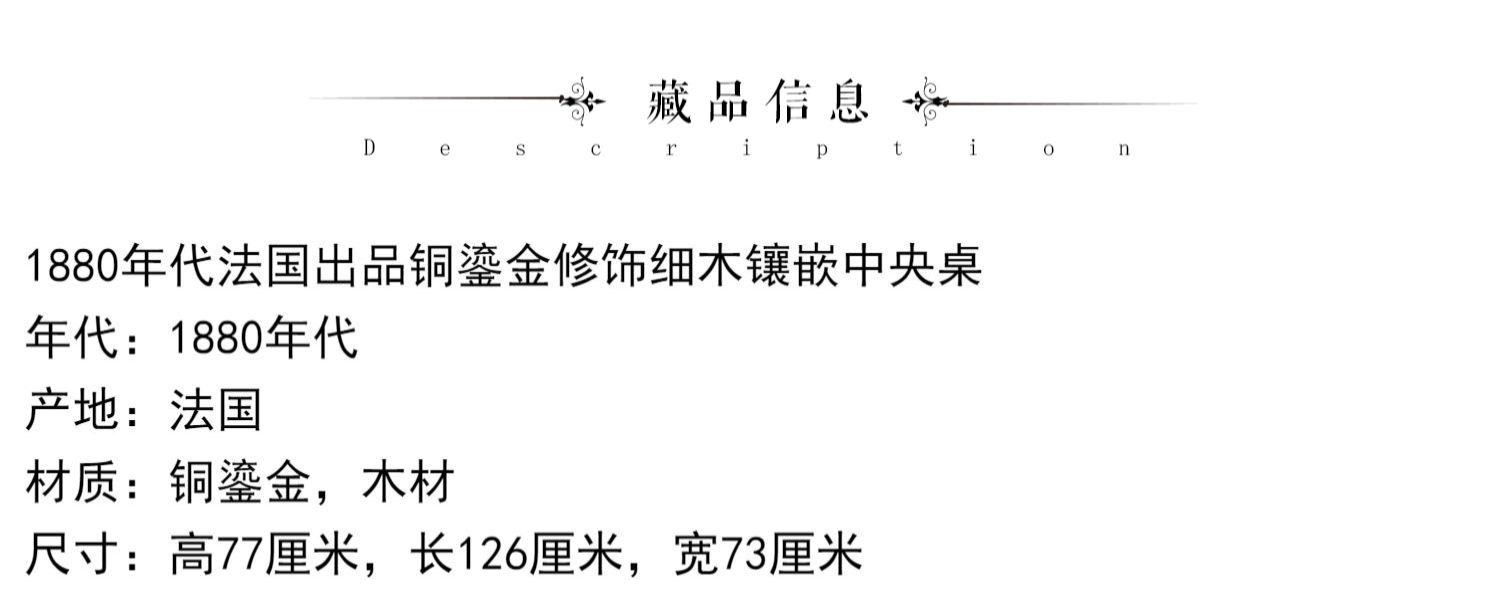 独角鹿西洋古董家具1880年代法国出品铜鎏金修饰细木镶嵌中央桌子