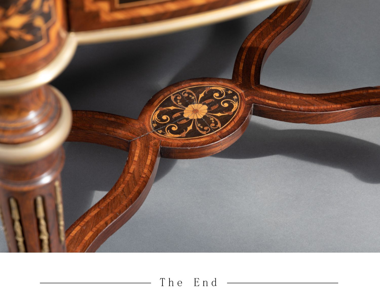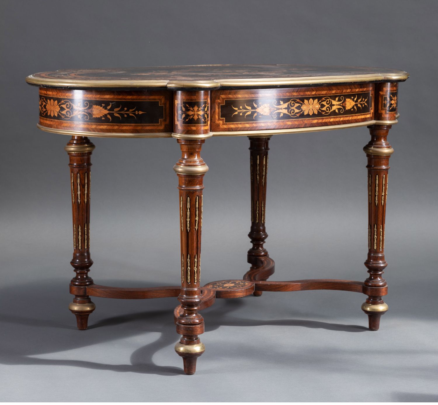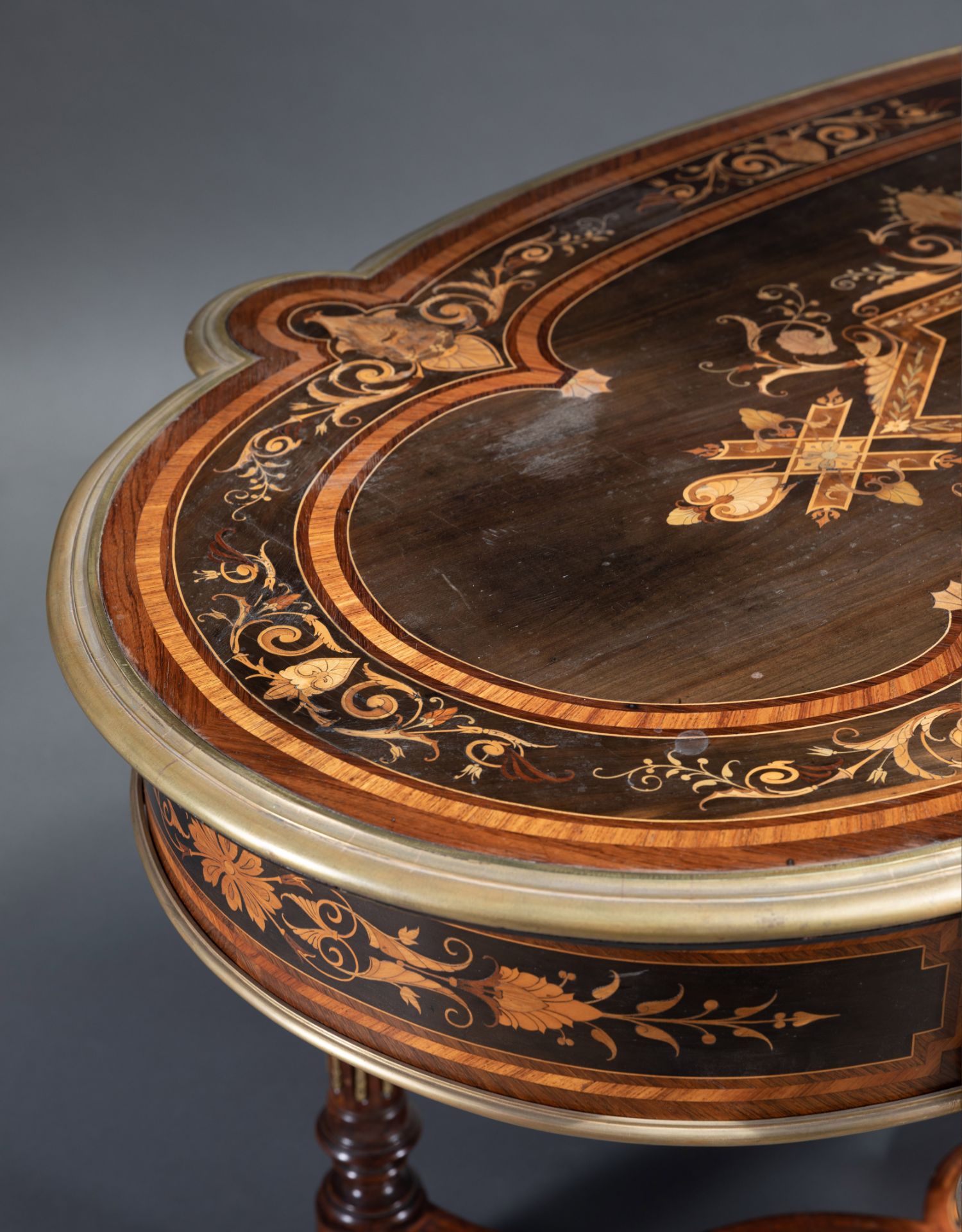 独角鹿西洋古董家具1880年代法国出品铜鎏金修饰细木镶嵌中央桌子