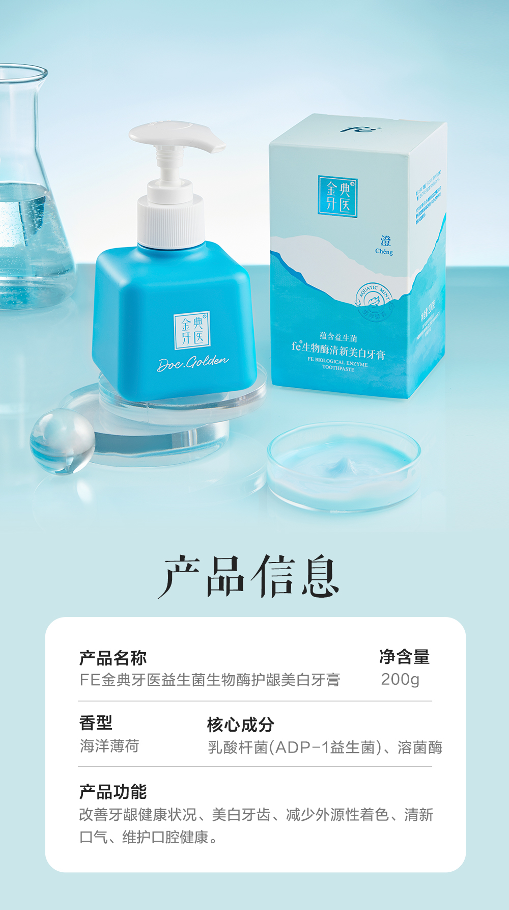 【双十二·拍一发N】fe金典美白牙膏生物溶菌酶 按压式牙膏200g薄荷海盐09132-1(临期有效期26.3)