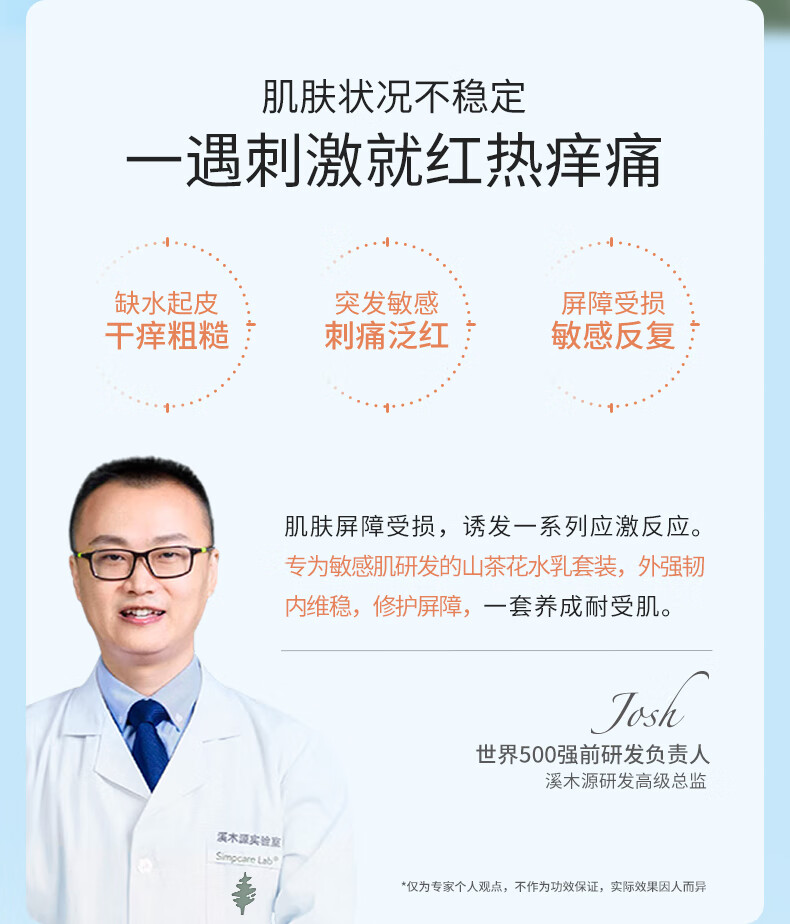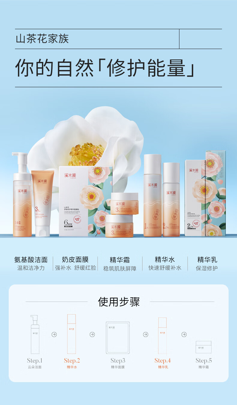 溪木源山茶花水乳套装舒缓修护敏感肌补水保湿男女干皮护肤品套装洁150ml+水乳120+100ml
