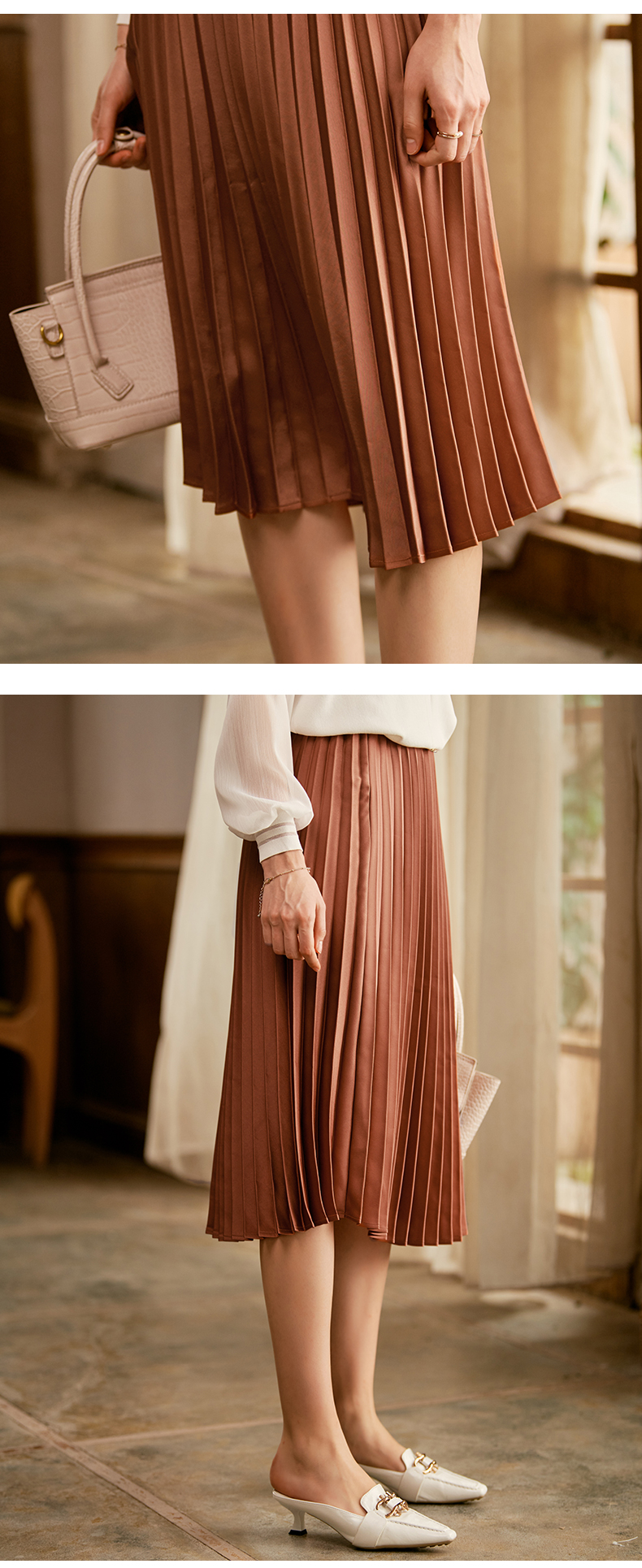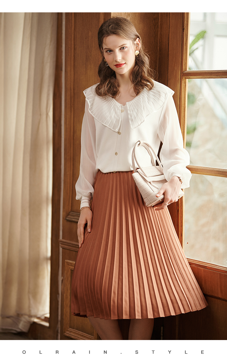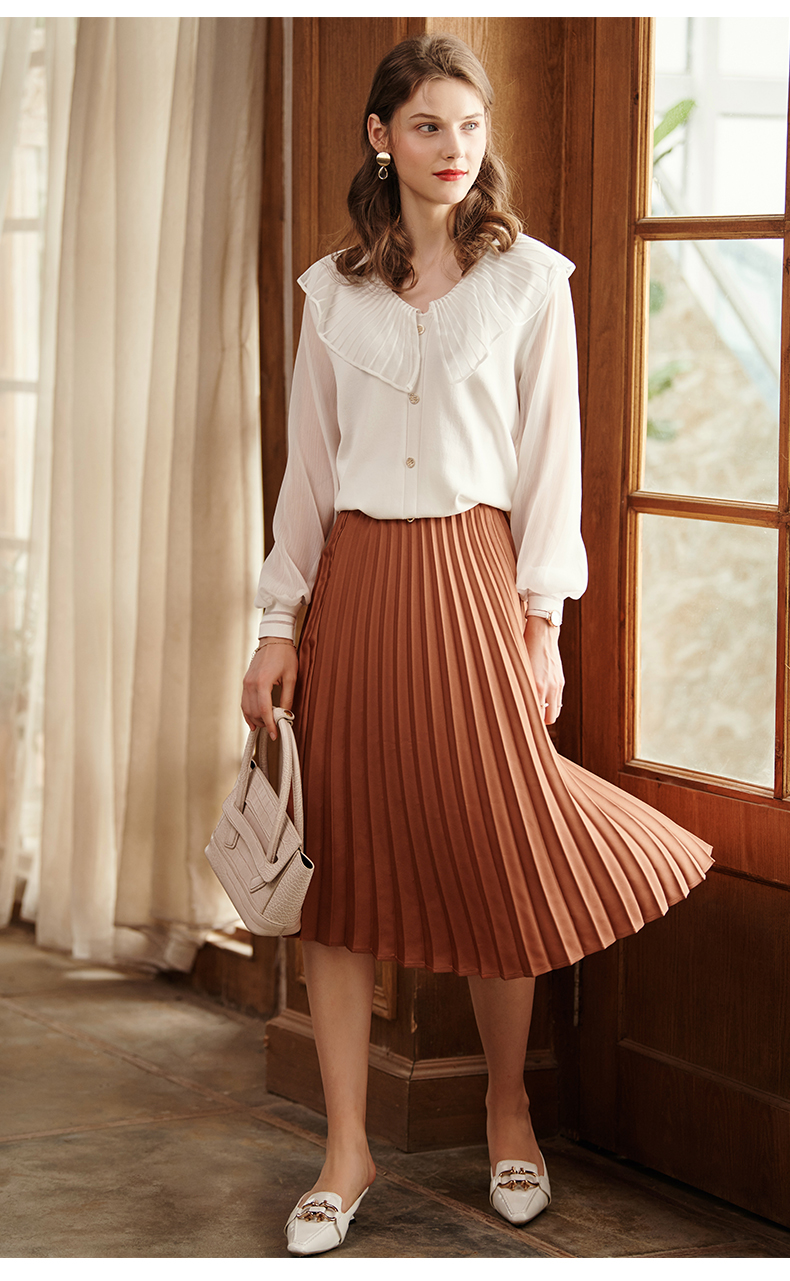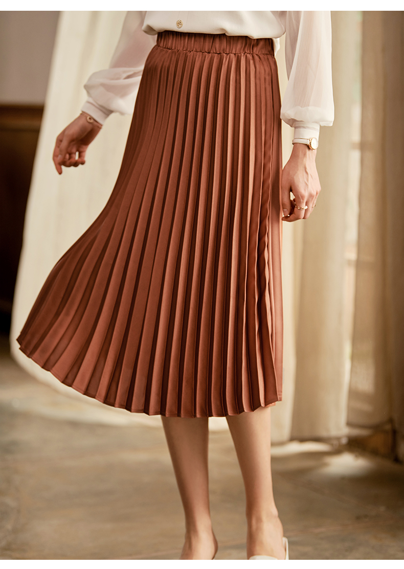 满满秋冬气息的焦糖色百褶半裙,