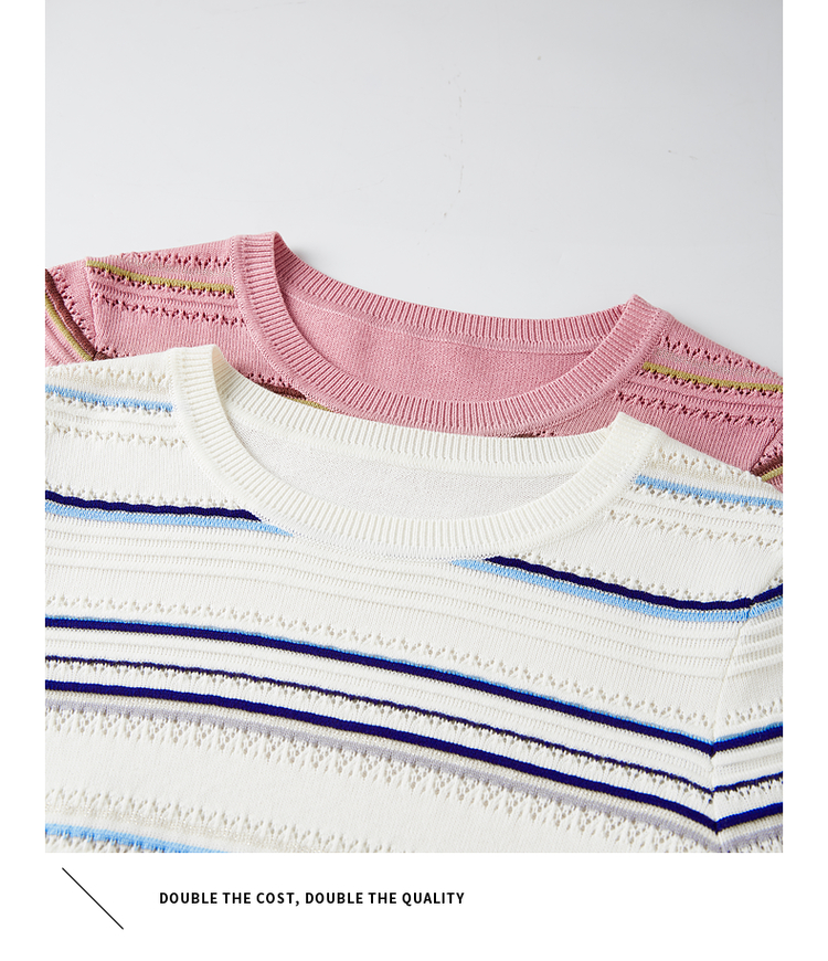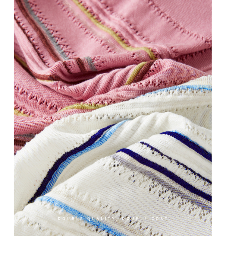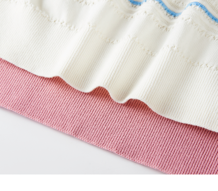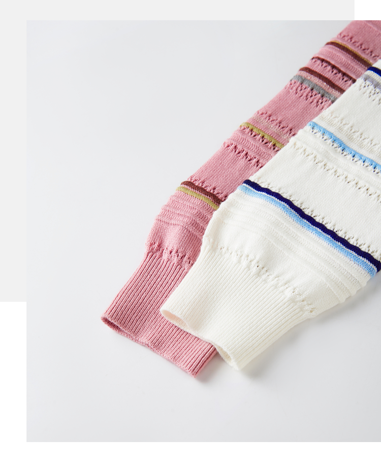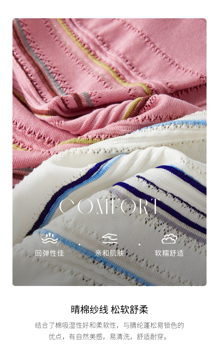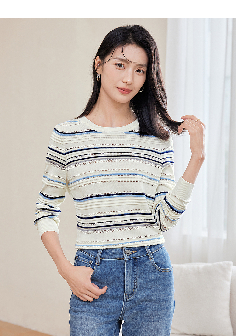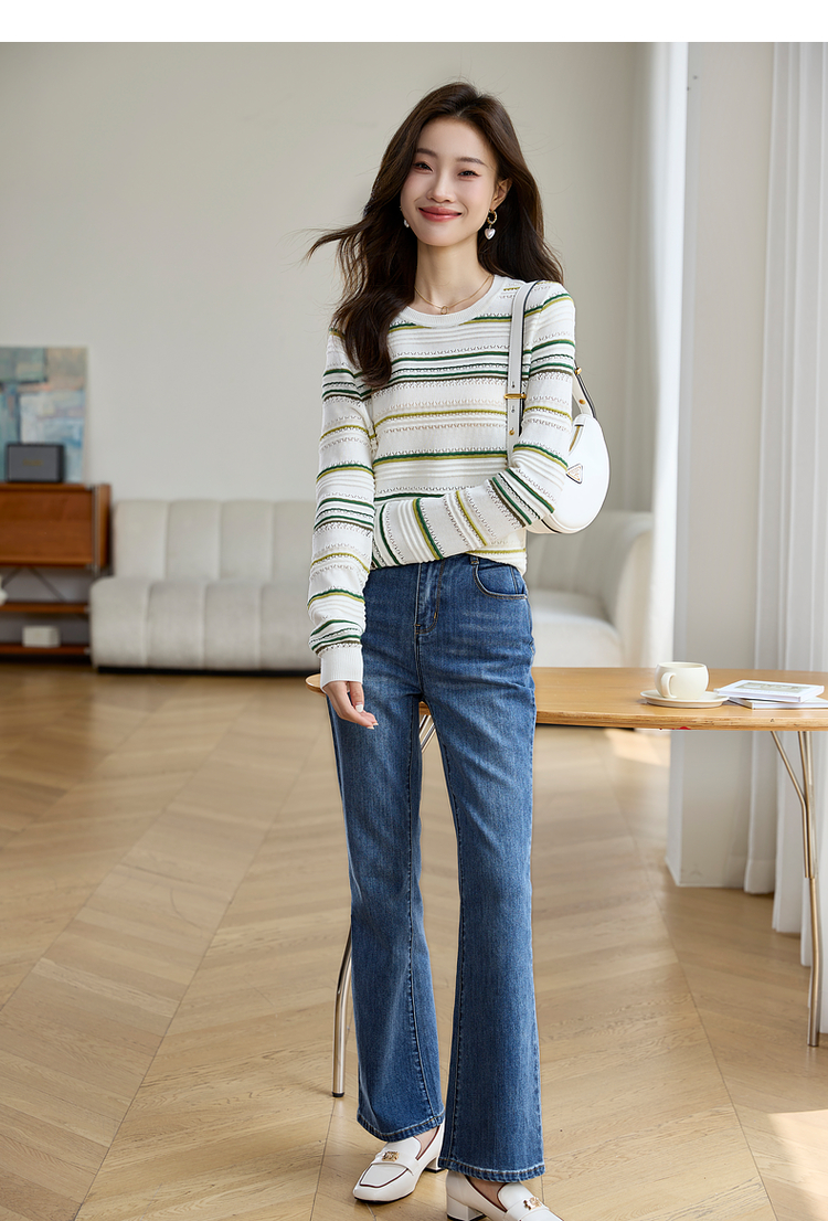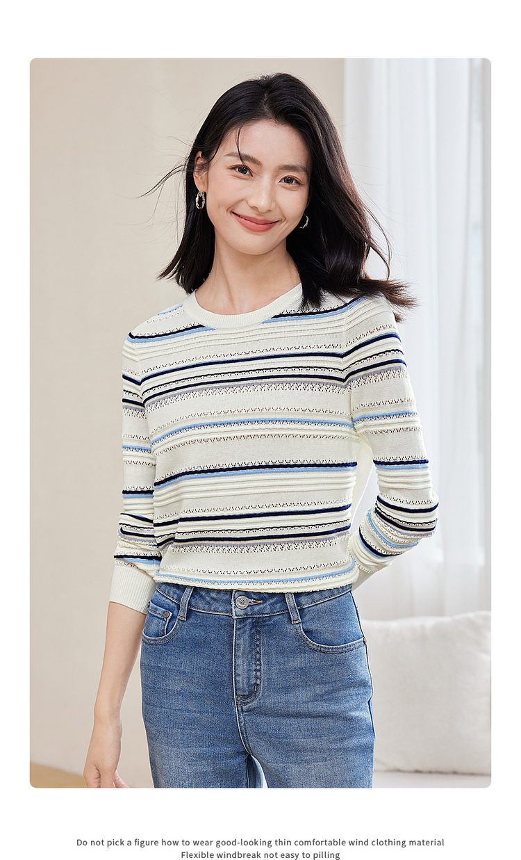 【年终特卖】熙世界多巴胺条纹打底针织衫秋季新款宽松圆领长袖法式撞色上衣