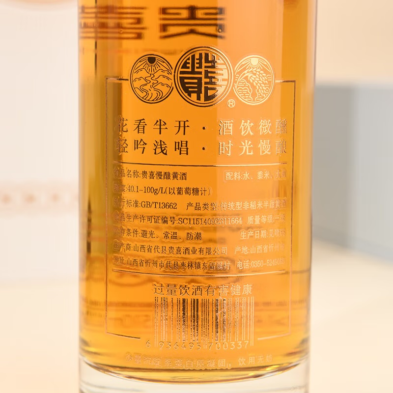 贵喜黄酒山西忻州特产 慢酿黄酒黍米酒 510mL *6瓶 /箱 慢酿16度