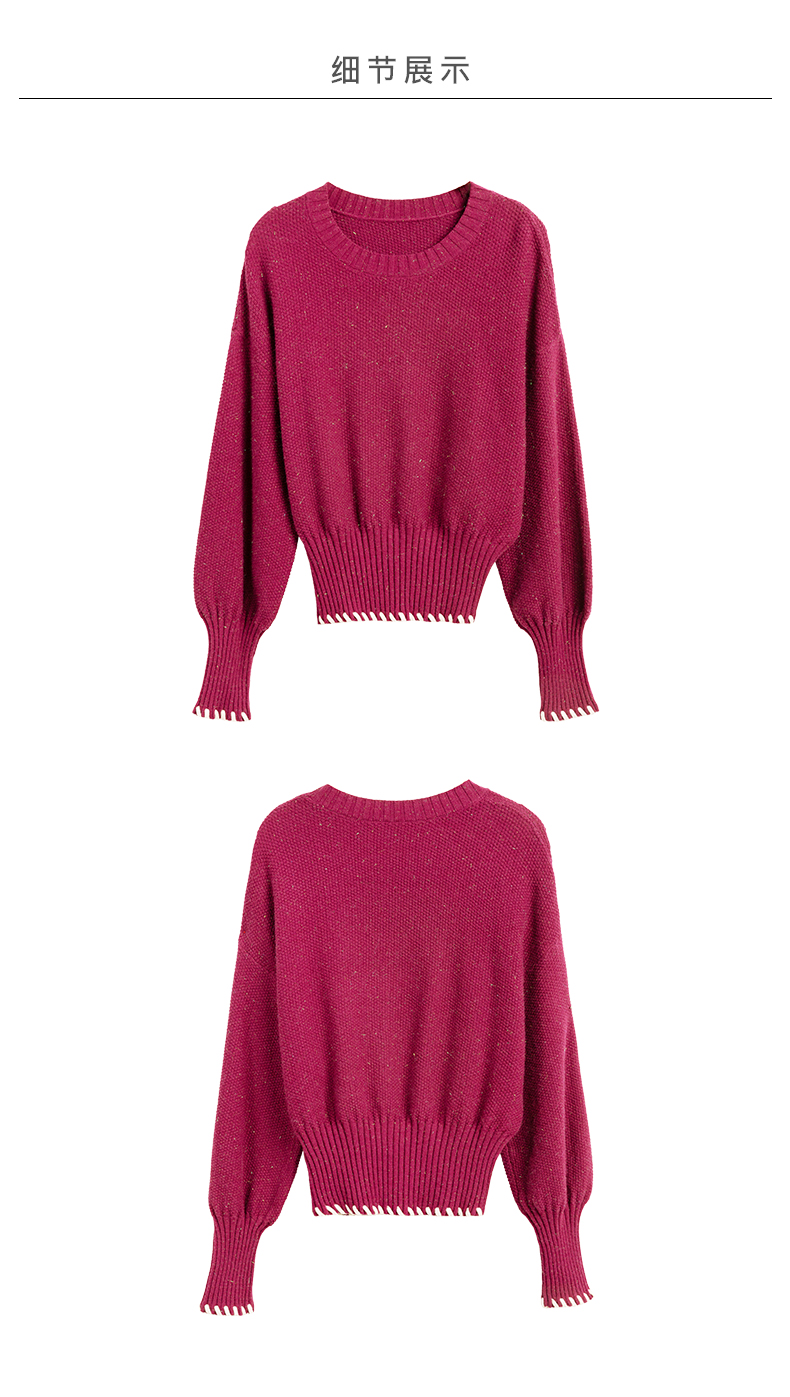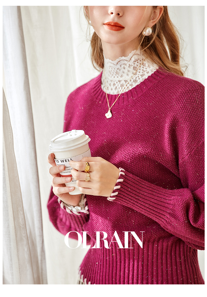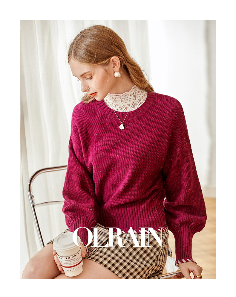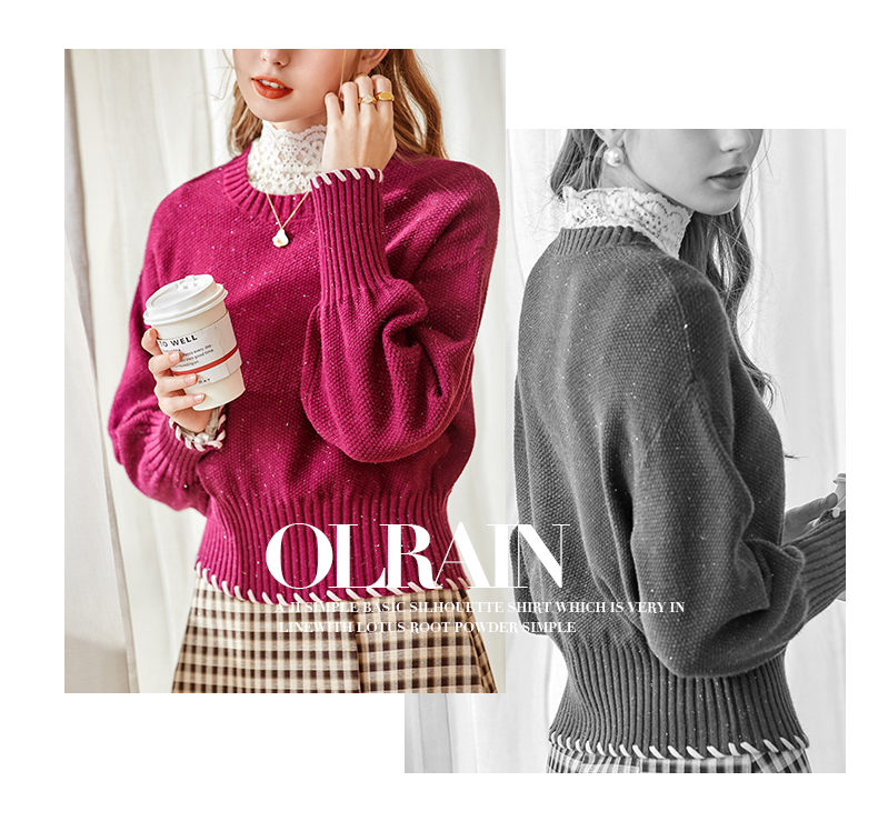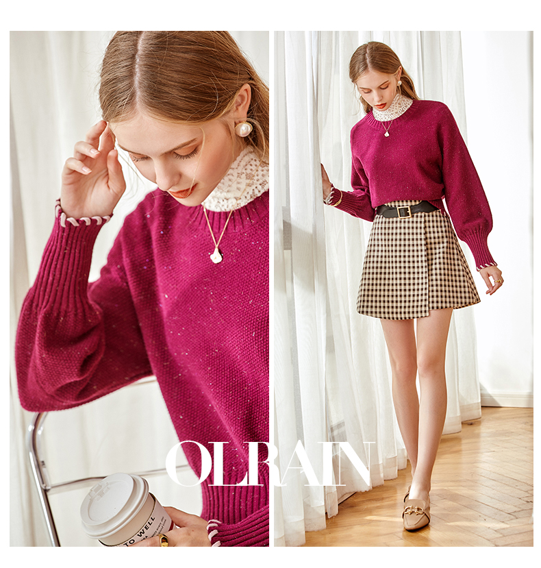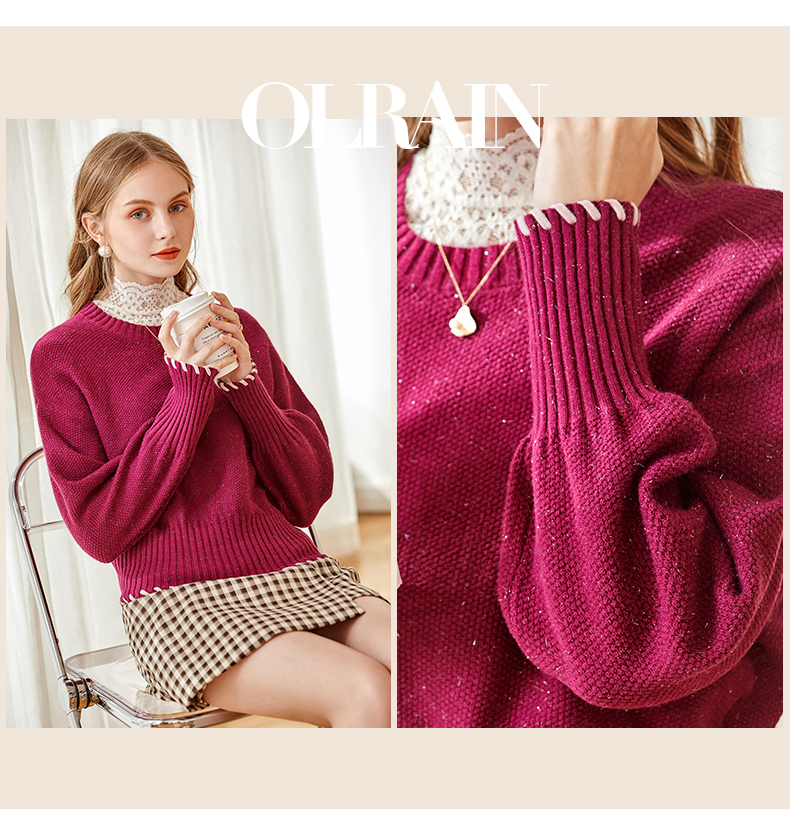 欧芮儿闪光丝毛针织衫女春新款圆领套头宽松显瘦气质百搭减龄上衣
