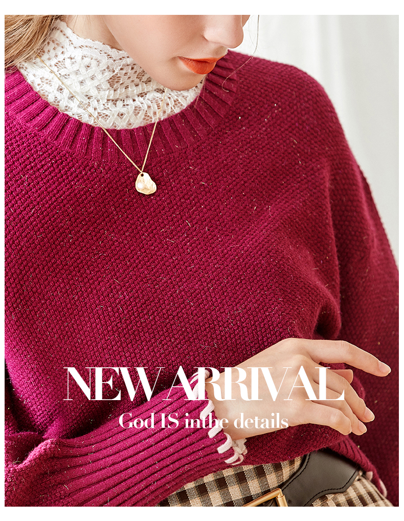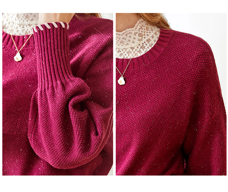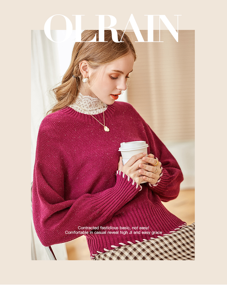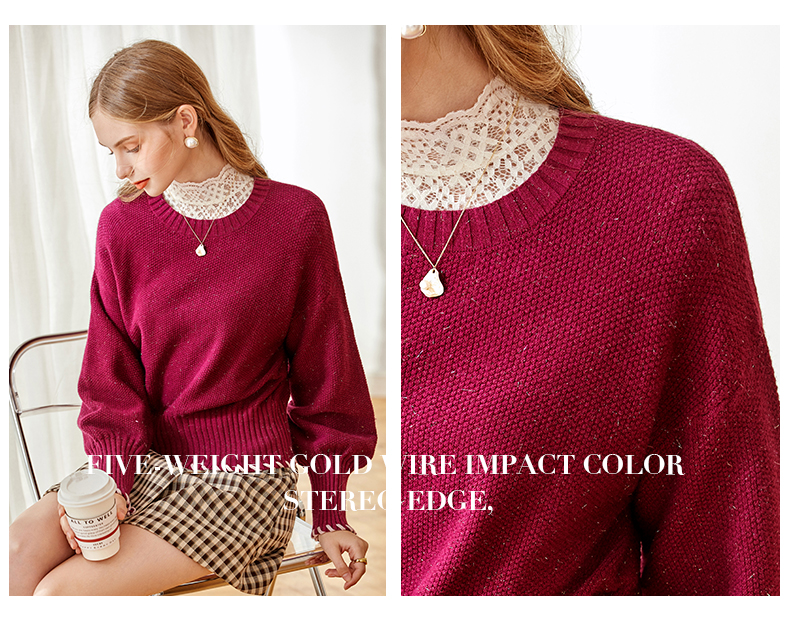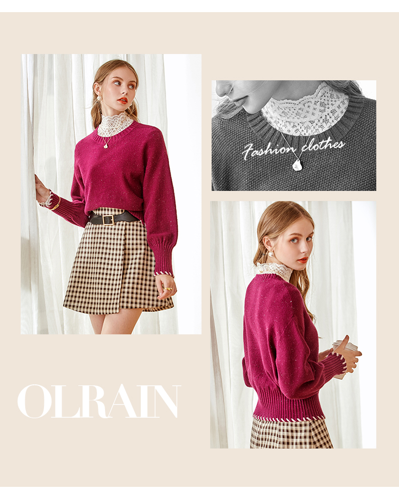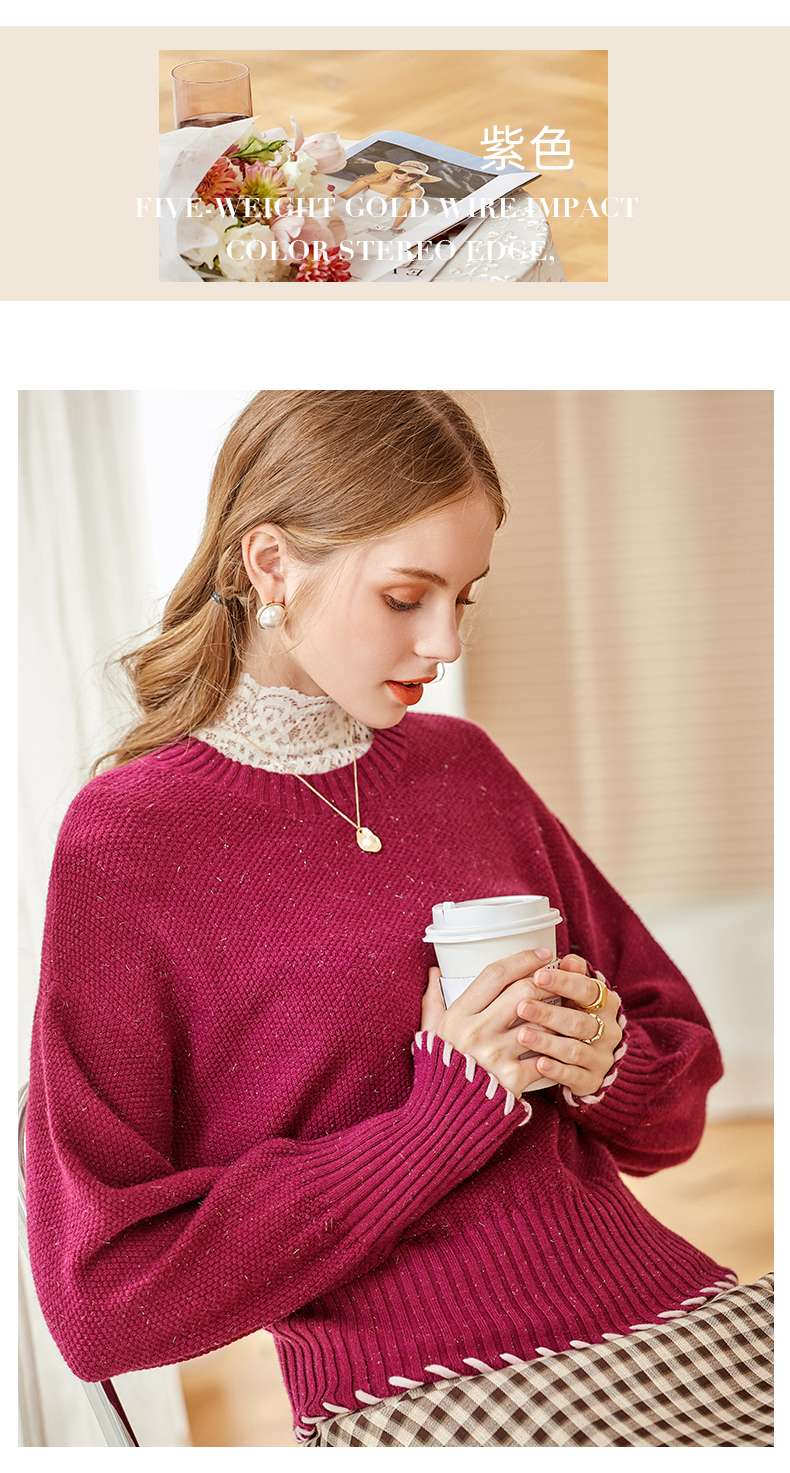 欧芮儿闪光丝毛针织衫女春新款圆领套头宽松显瘦气质百搭减龄上衣