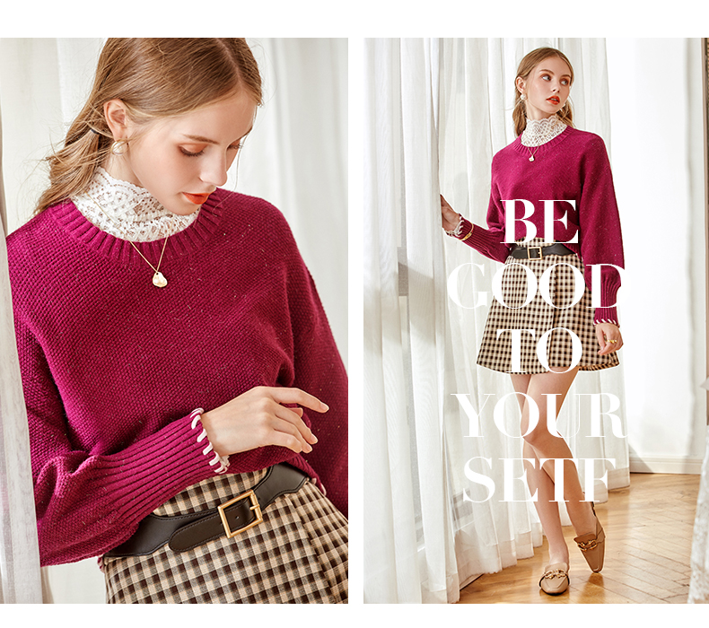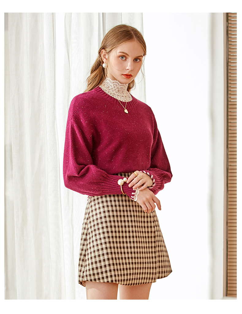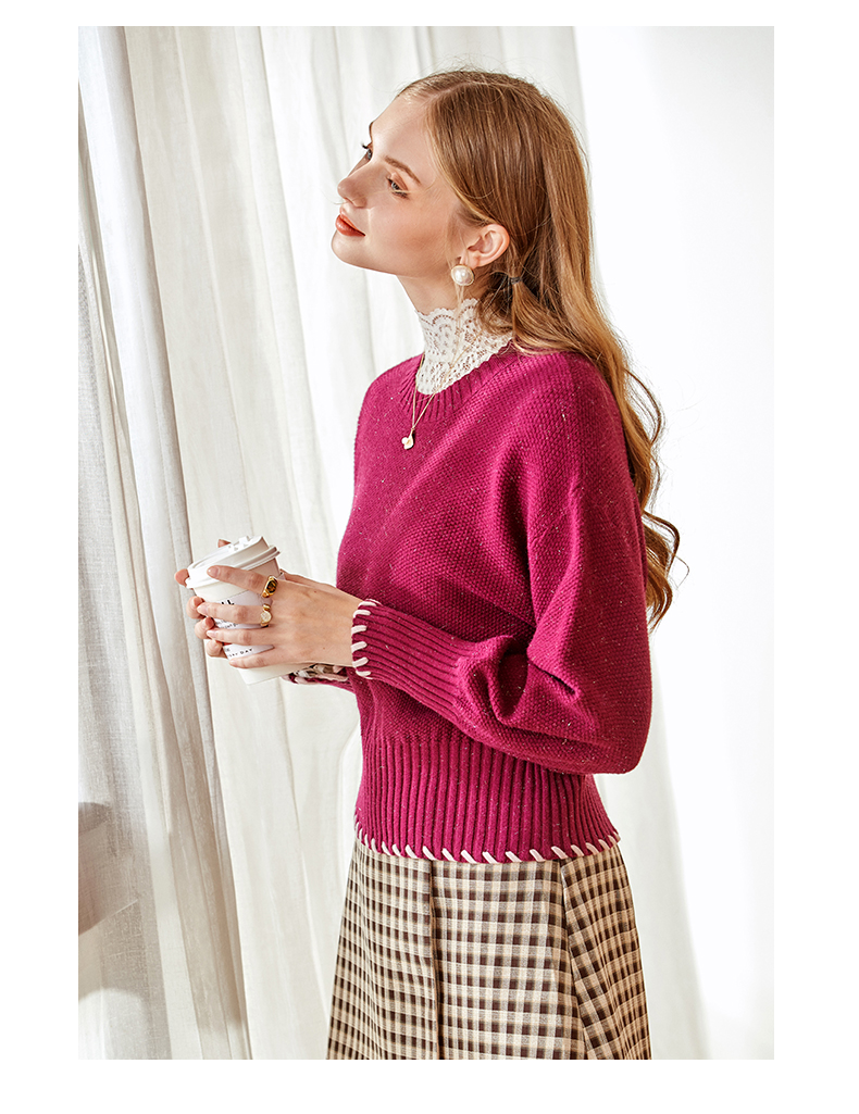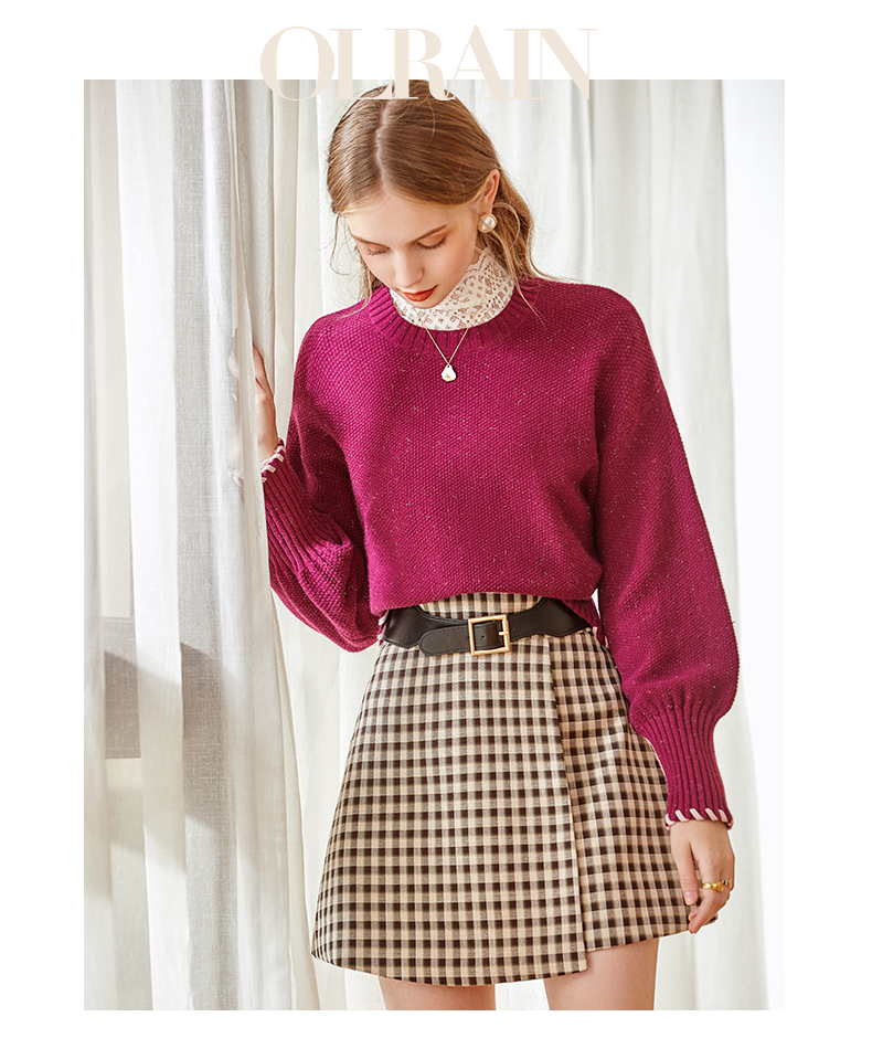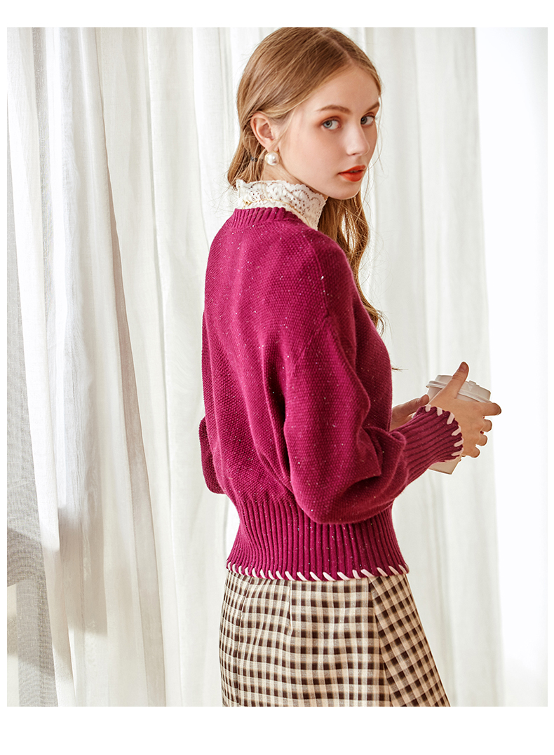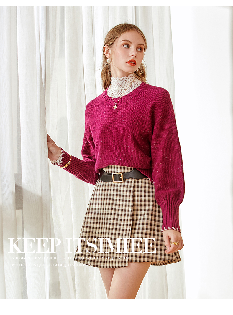欧芮儿闪光丝毛针织衫女春新款圆领套头宽松显瘦气质百搭减龄上衣
