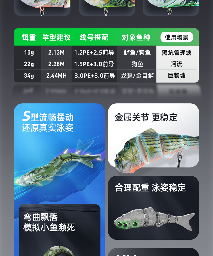 汉鼎大嘴系列多节鱼鲈鱼鳜鱼路亚假饵远投假饵拟饵