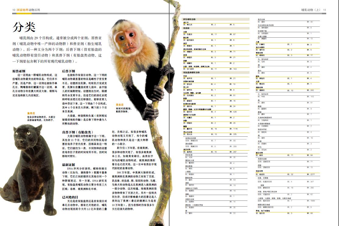 按照分类呈现不同哺乳动物的典型代表,了解它们各自的特点。